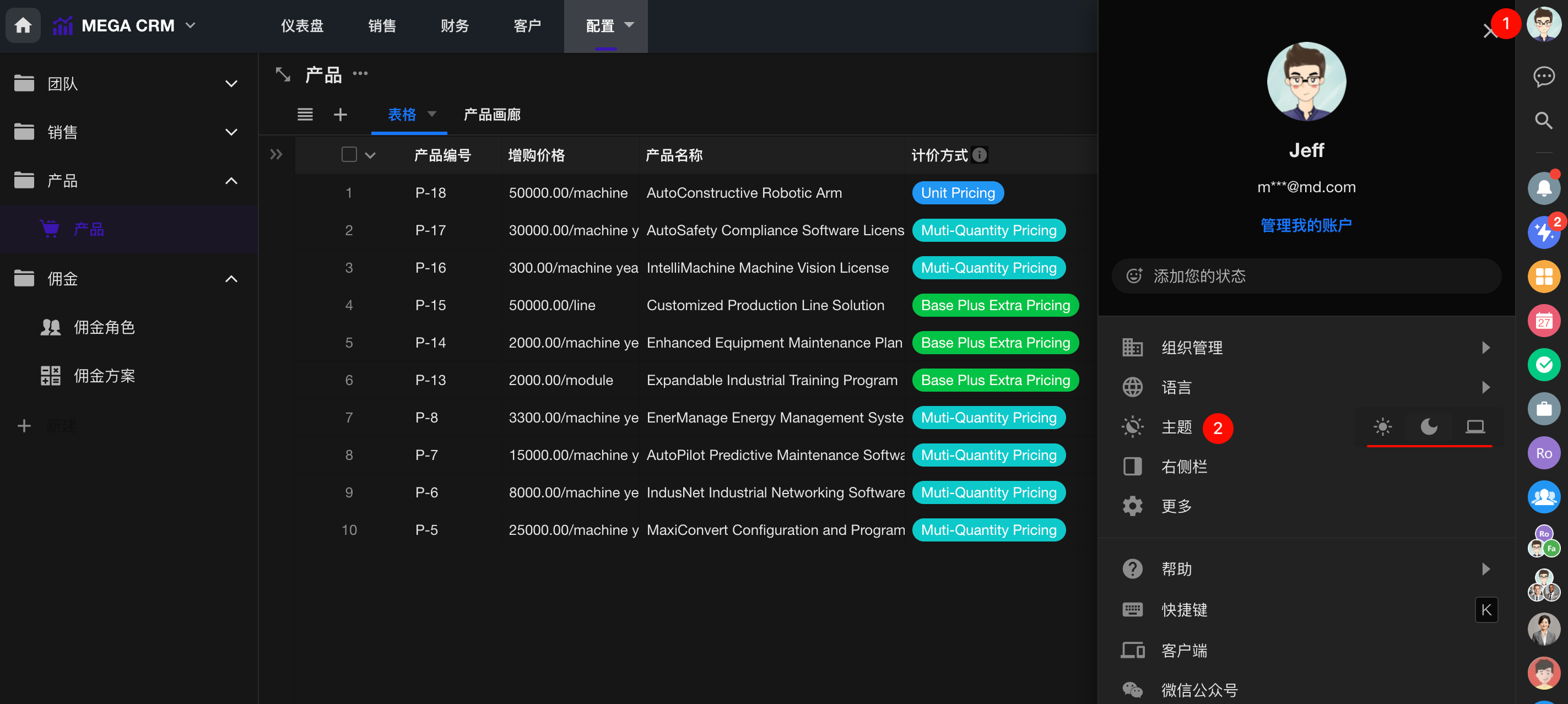 点击【头像】>【主题】,可以选择主题模式。系统内的外观支持深 色模式和浅色模式,或根据设备设置自动切换主题。
