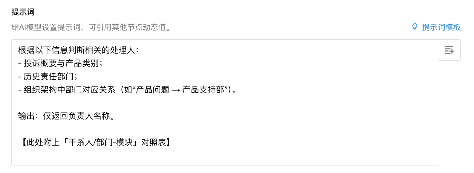 5. 语气与风格:若面向终端用户(对话机器人),应保证语气自然友好;在流程中执行(AI 节点)时应简洁稳重。