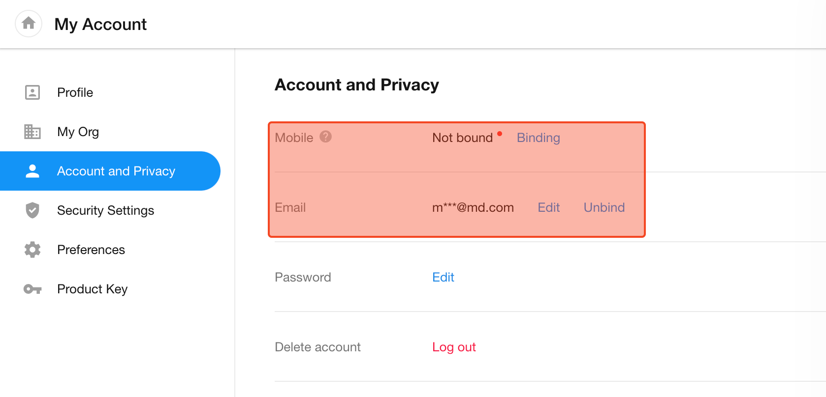 You can bind or unbind your mobile number and email address from your account. Learn more details