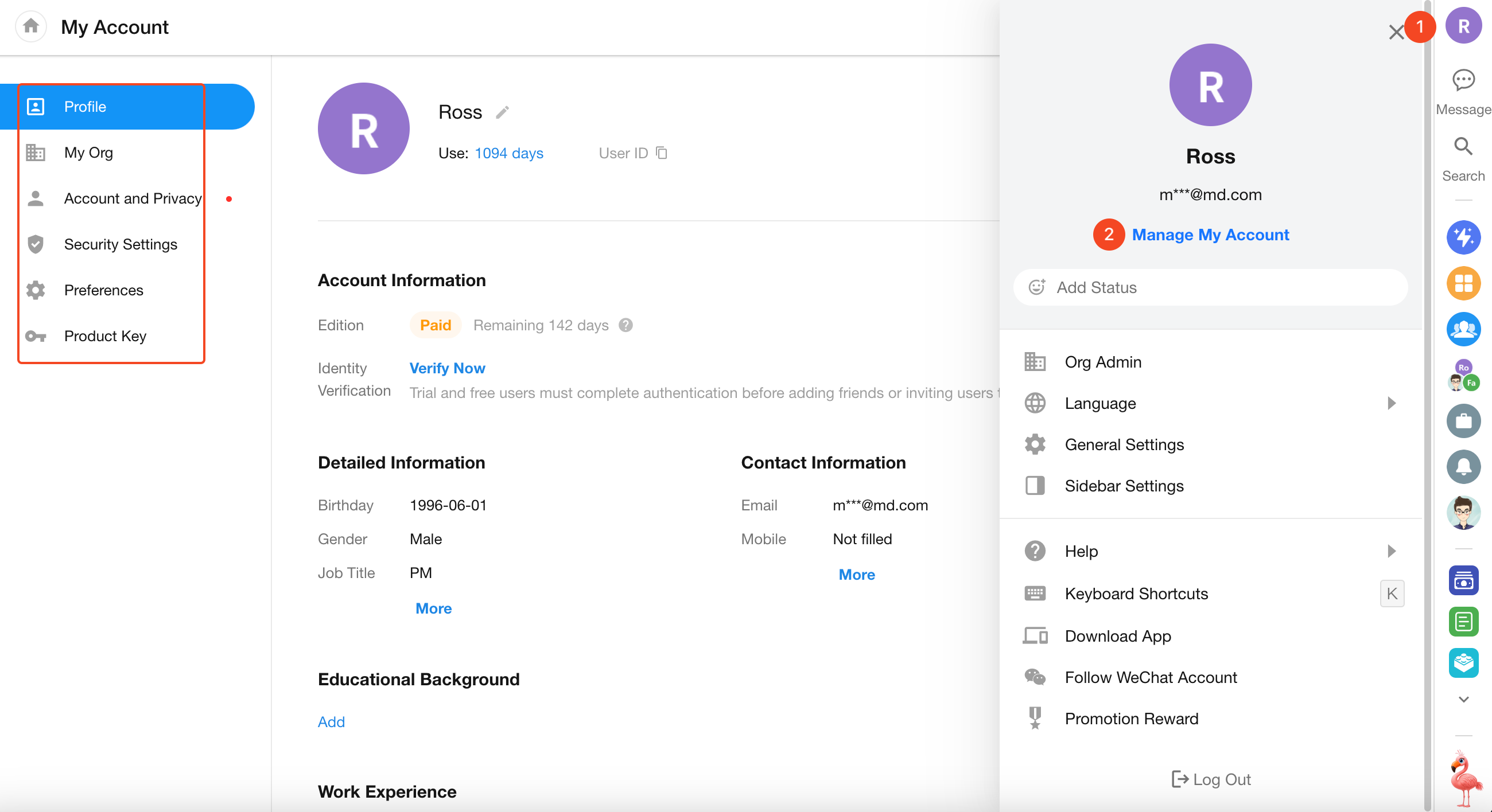 Go to [Manage My Account] > [Profile] to update your name, avatar, and other personal details.
