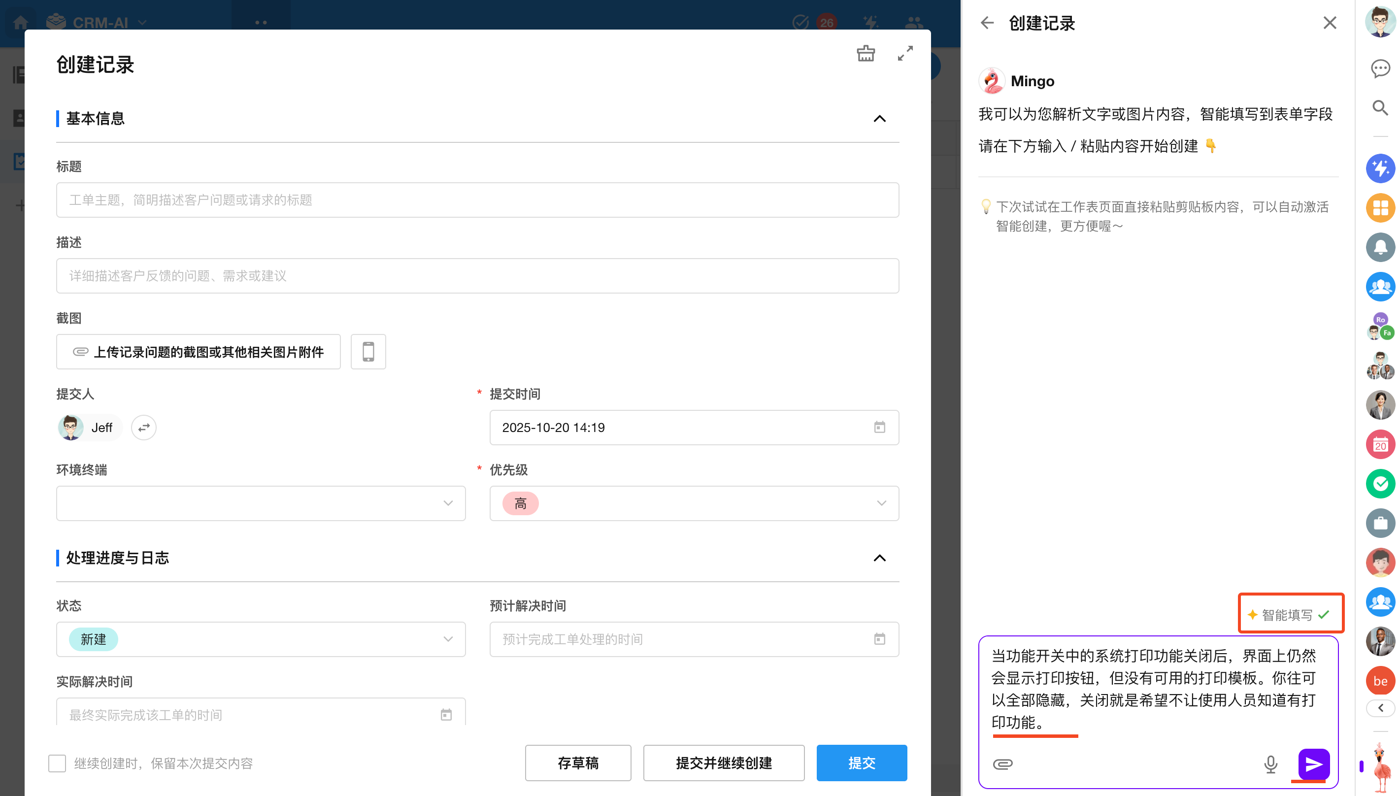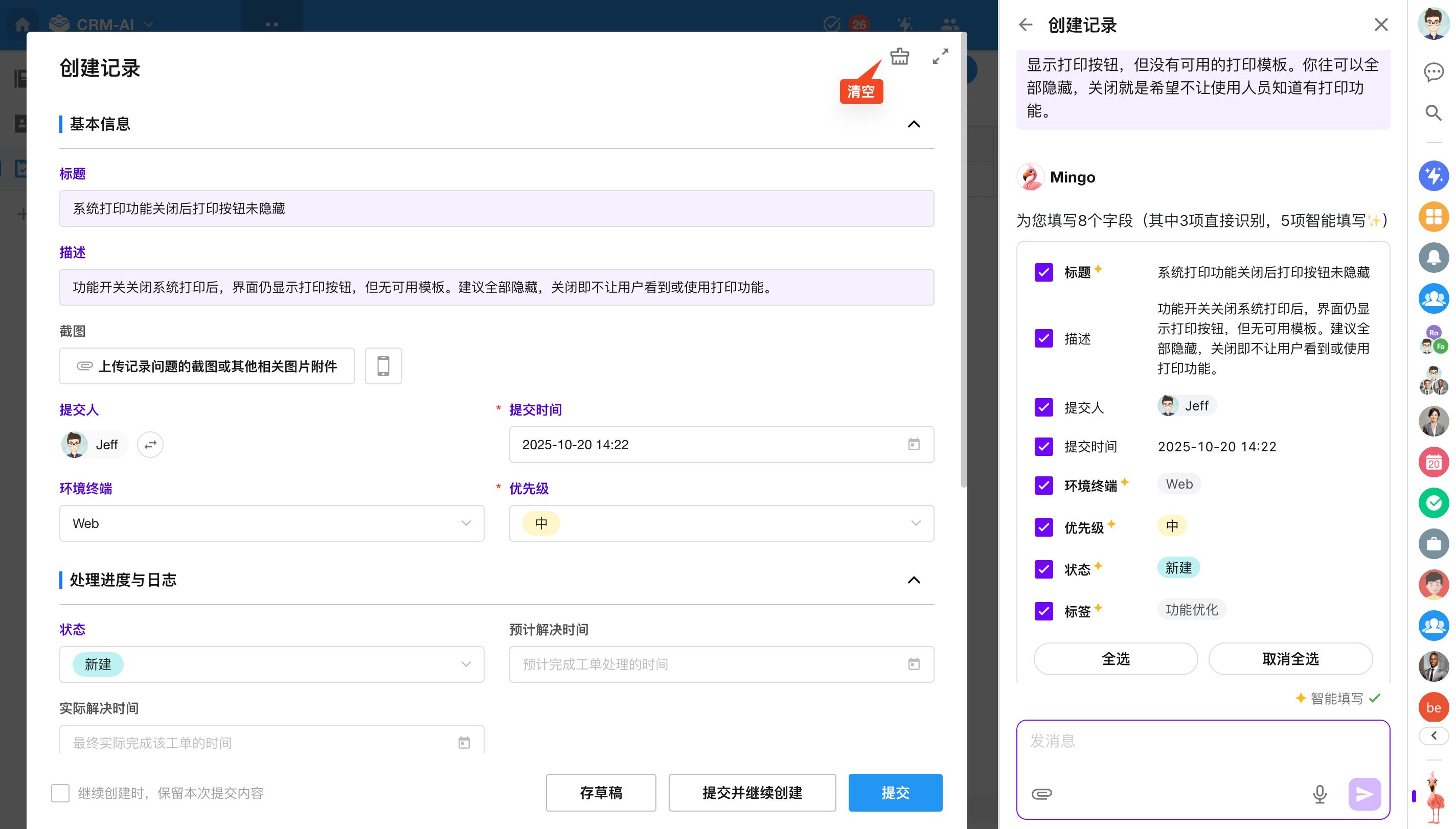 AI 会解析输入内容并自动写入可识别字段。确认无误后,点击“提交”。
