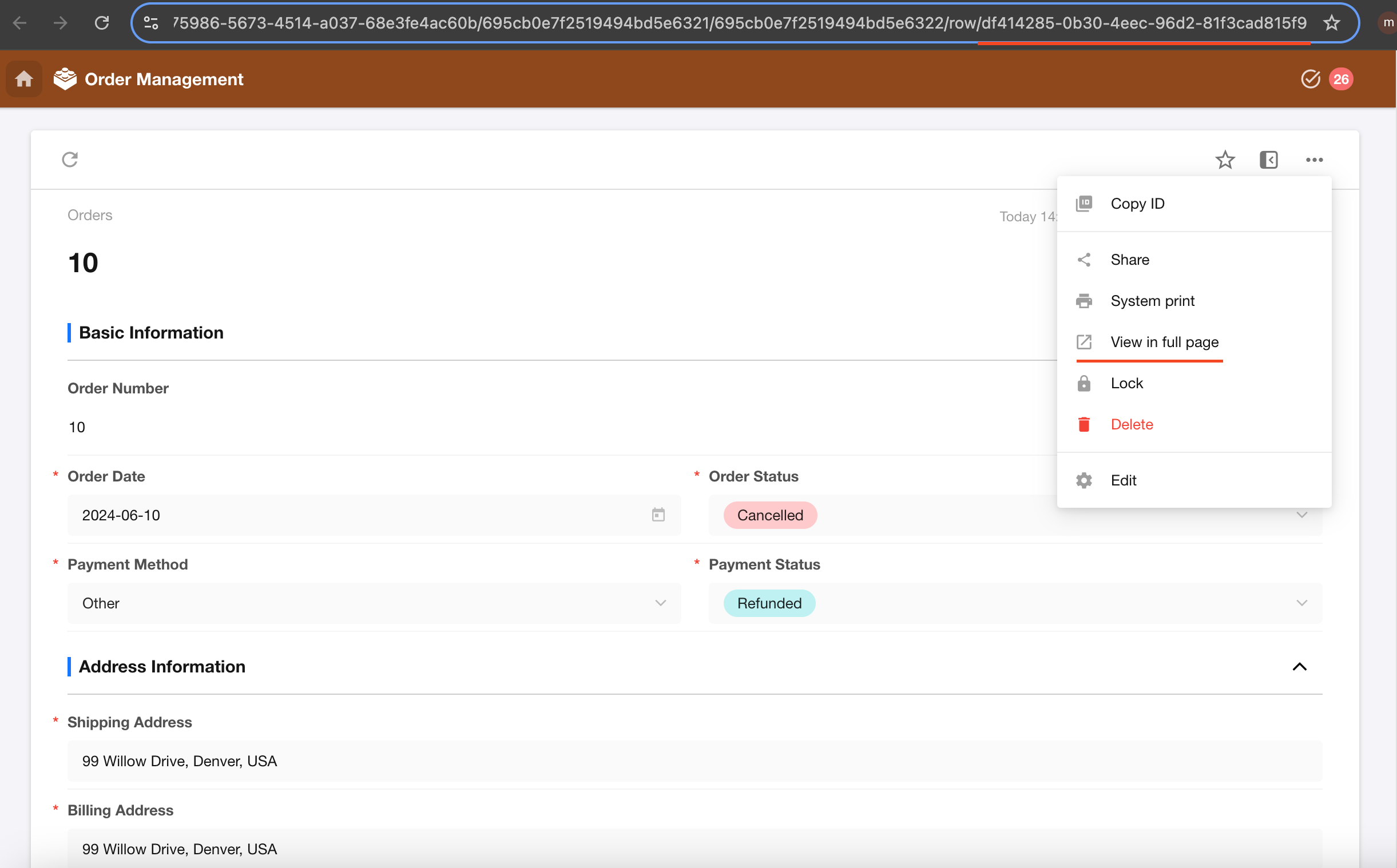 For example, the record ID in the image below is: df414285-0b30-4eec-96d2-81f3cad815f9