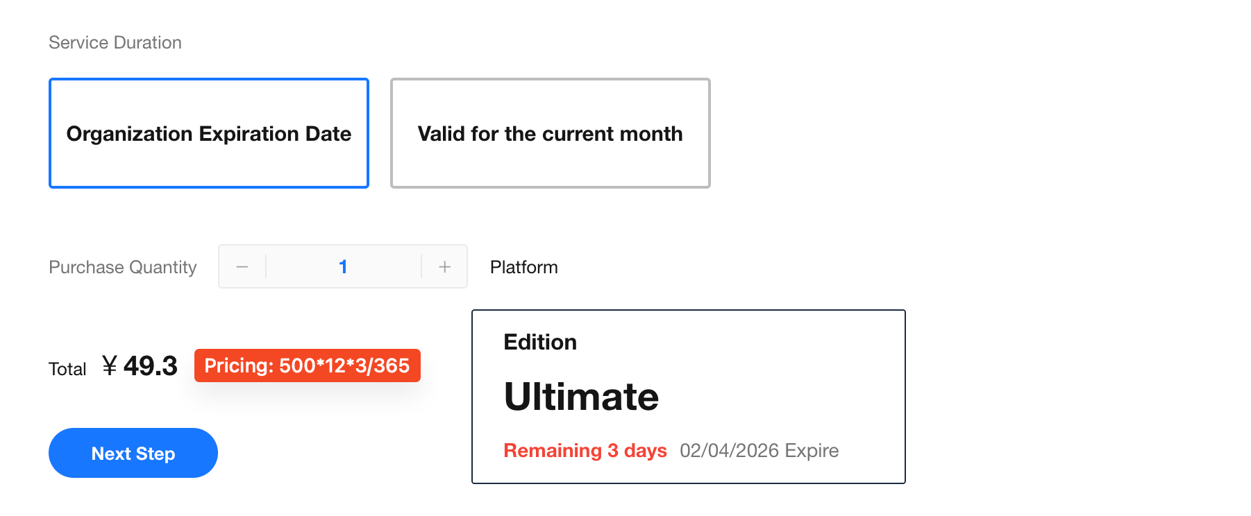 Available from the current month until the platform license expiration date.