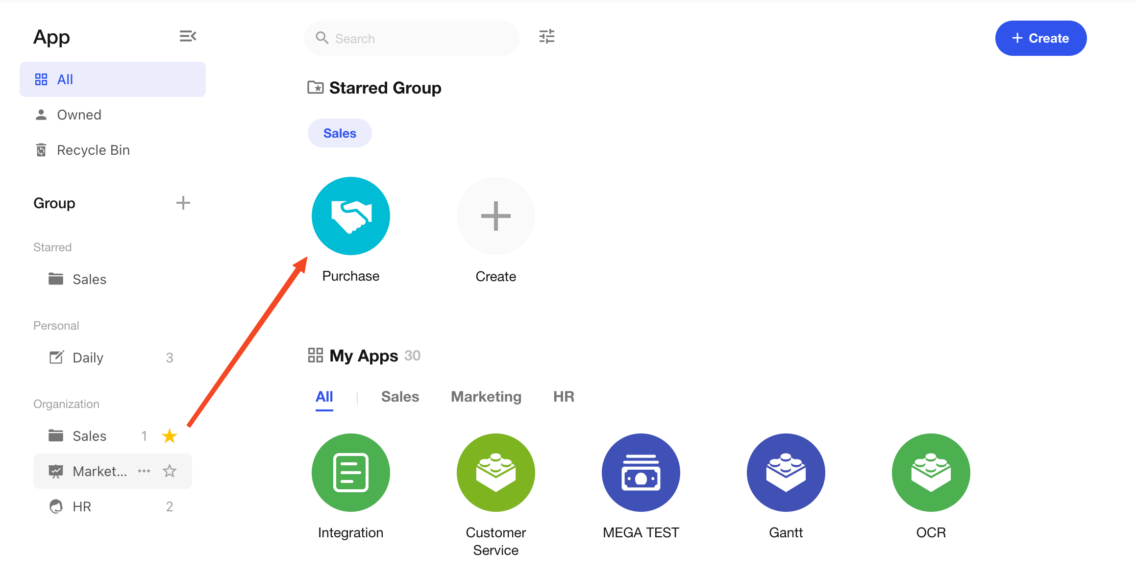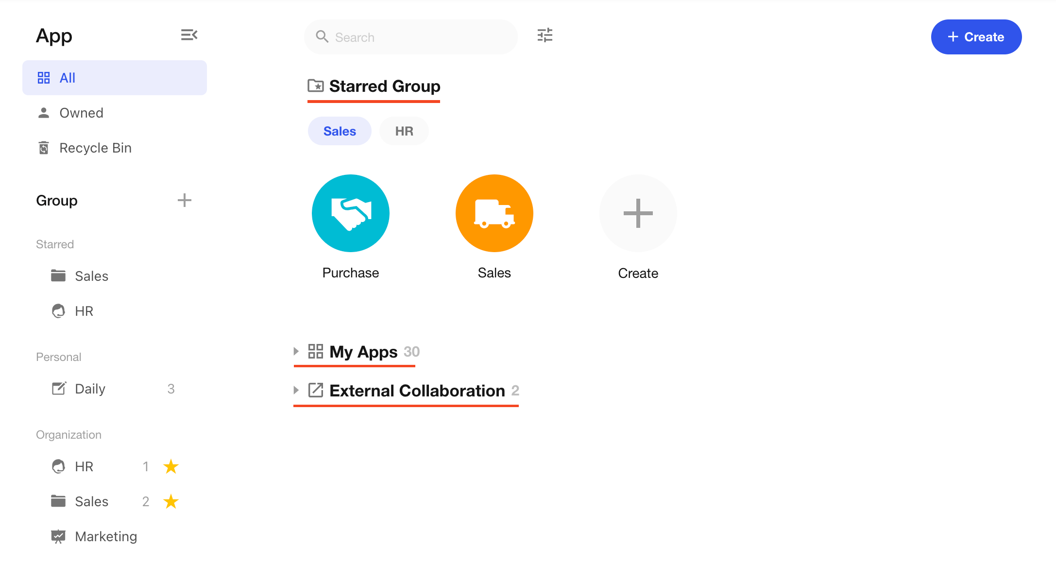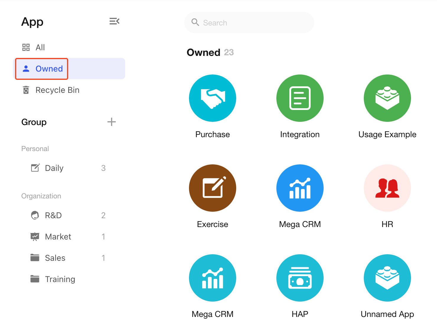 If you have many applications, you can organize them into custom groups—for example, by department, project, or business type—to quickly locate relevant applications.