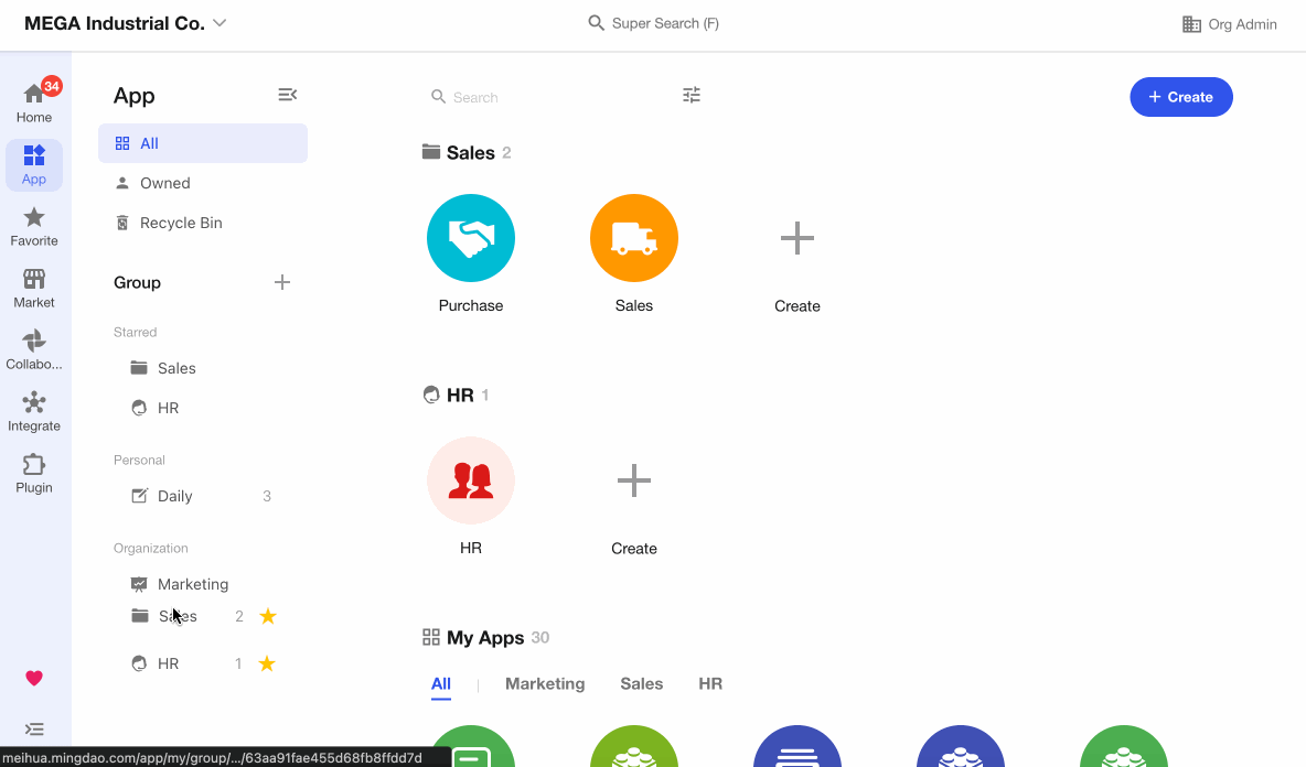 On the HAP application page, applications can be organized into groups (such as personal groups and organization groups). You can also quickly find target applications using search.