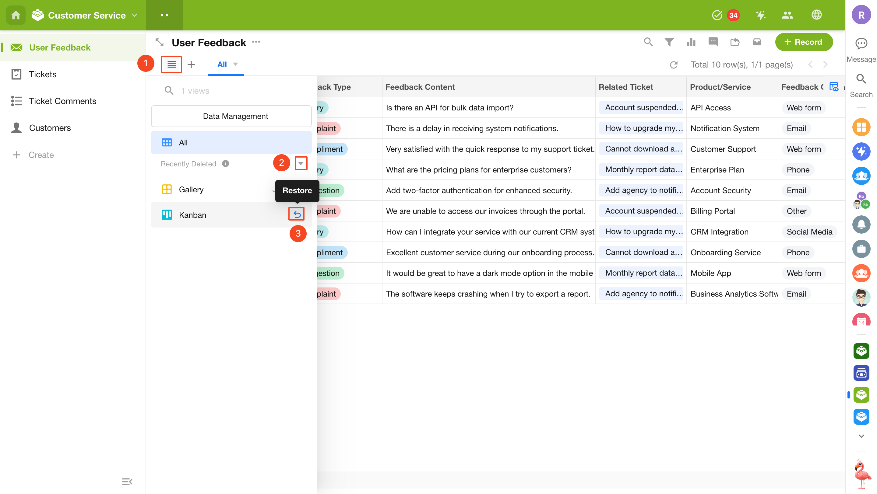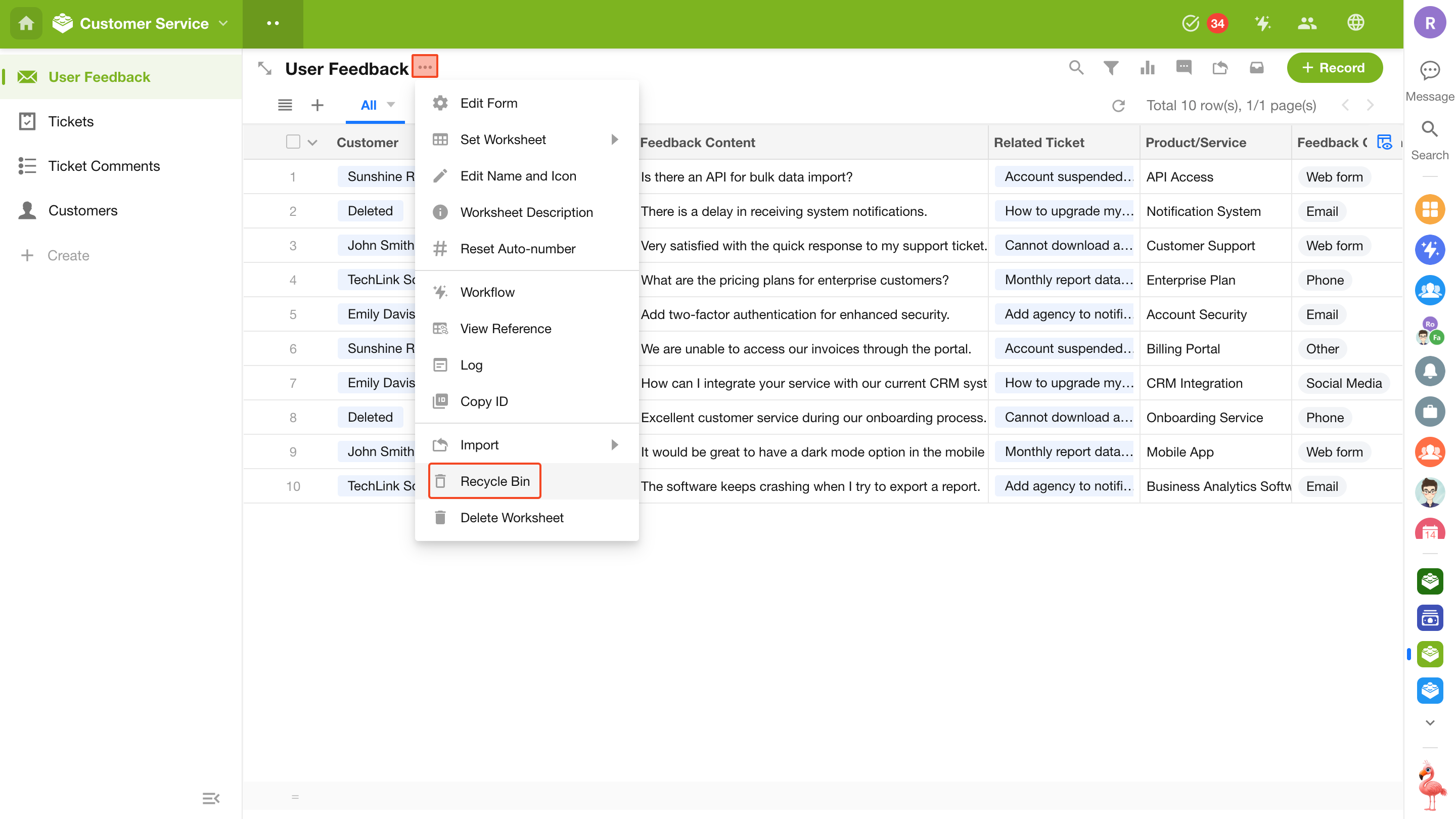 After records are deleted, you can access the recycle bin within the worksheet to restore or permanently delete them.