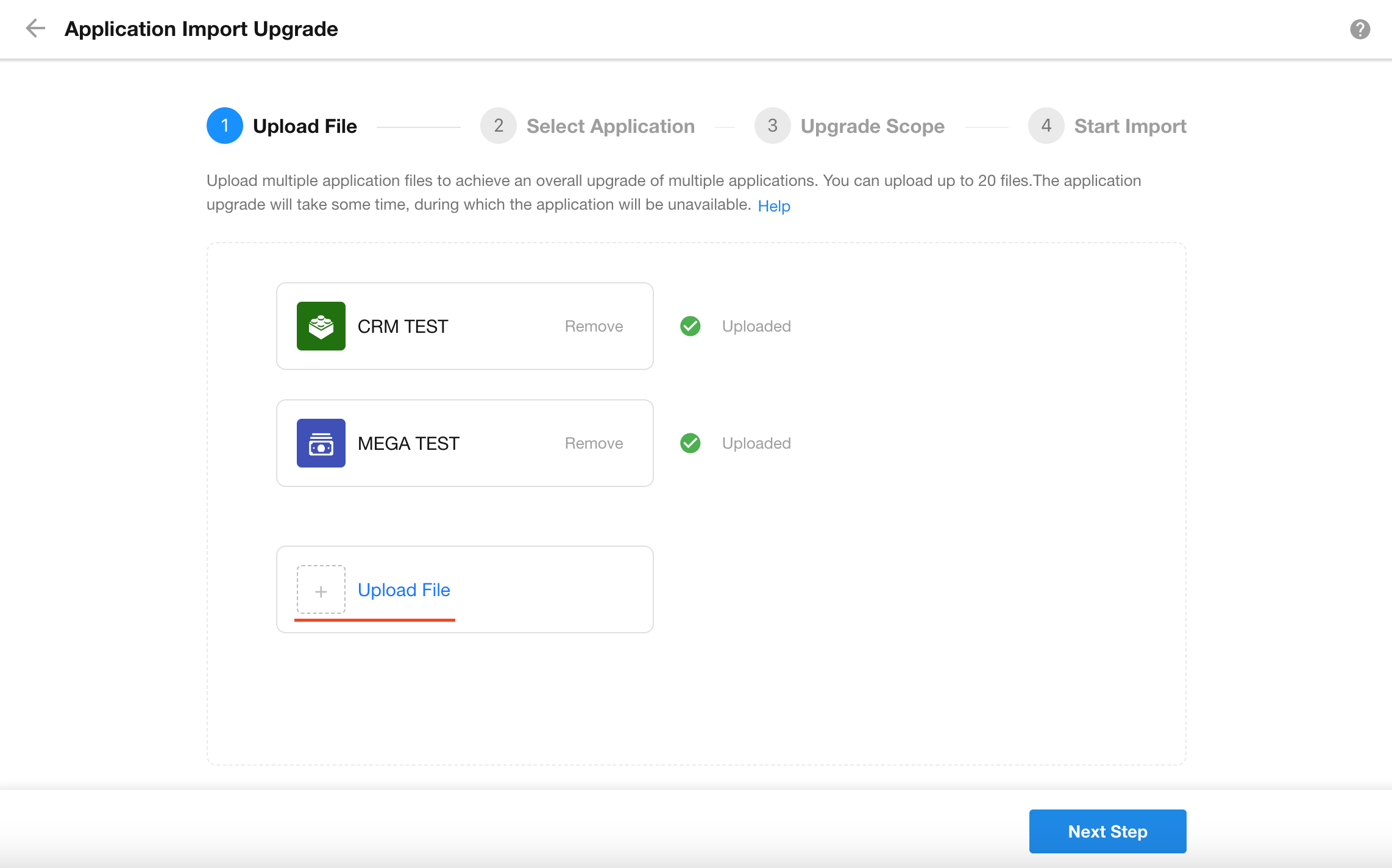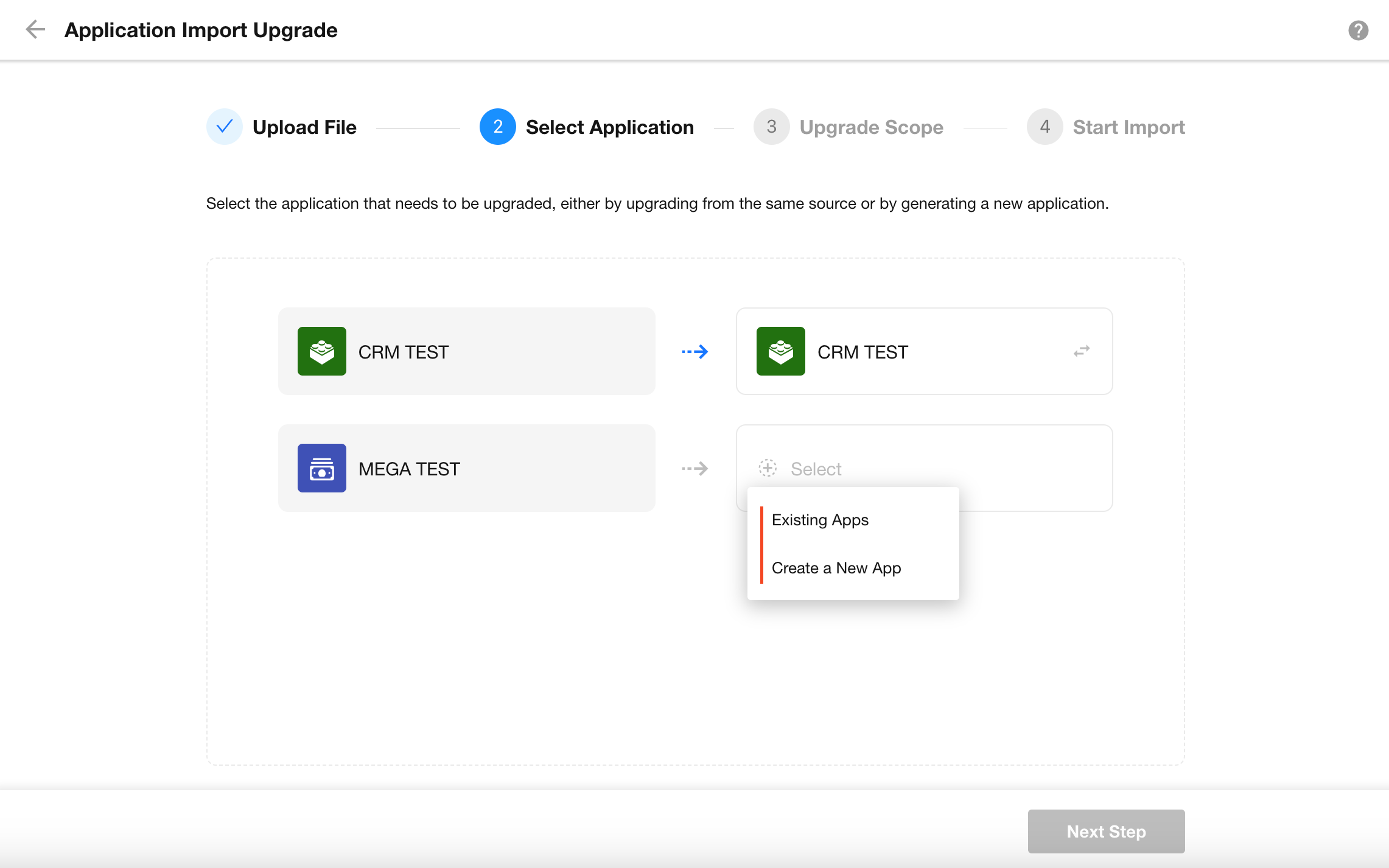 After the import is complete, an upgrade record will be displayed in the Application Import and Upgrade page.