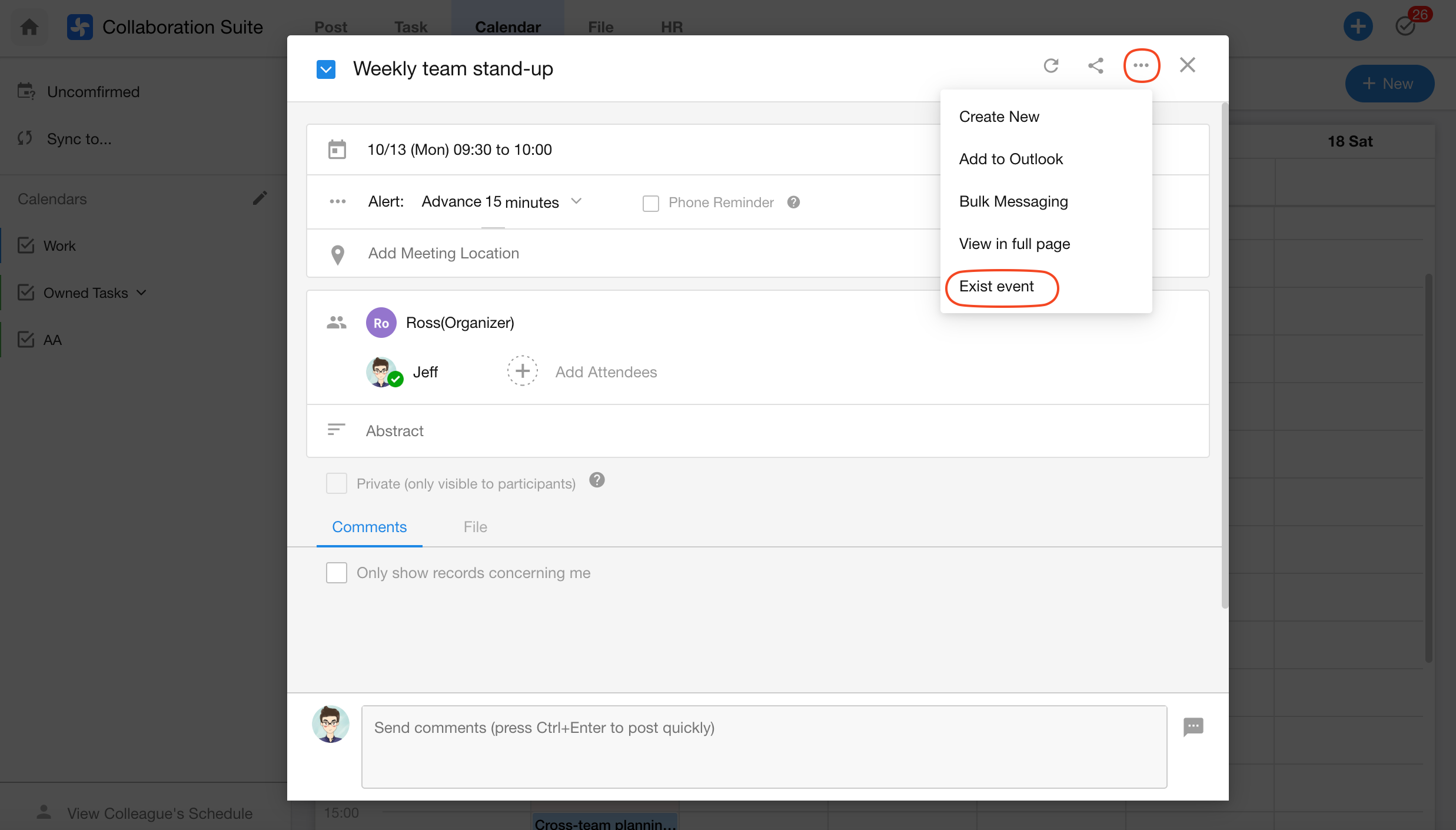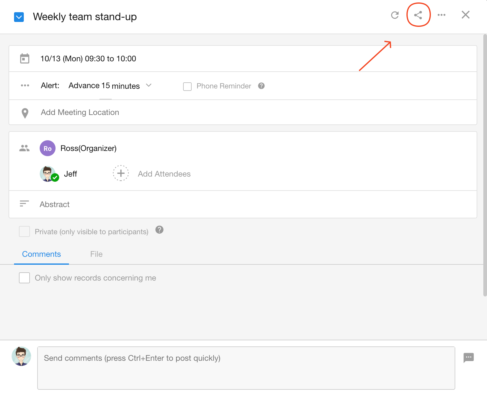 After an event is created, you can update the event time, add or remove participants, and adjust other settings.