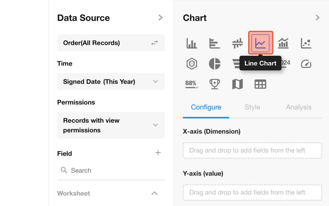 A line chart plots data points and connects them with lines to visually represent trends over time or across categories. It not only shows numerical values but also highlights how data changes.