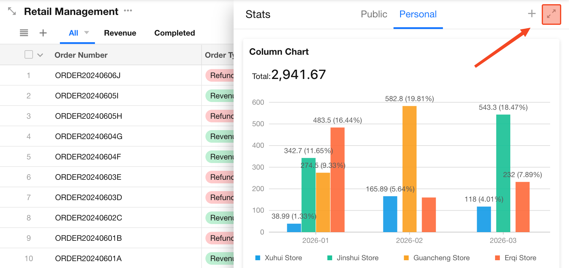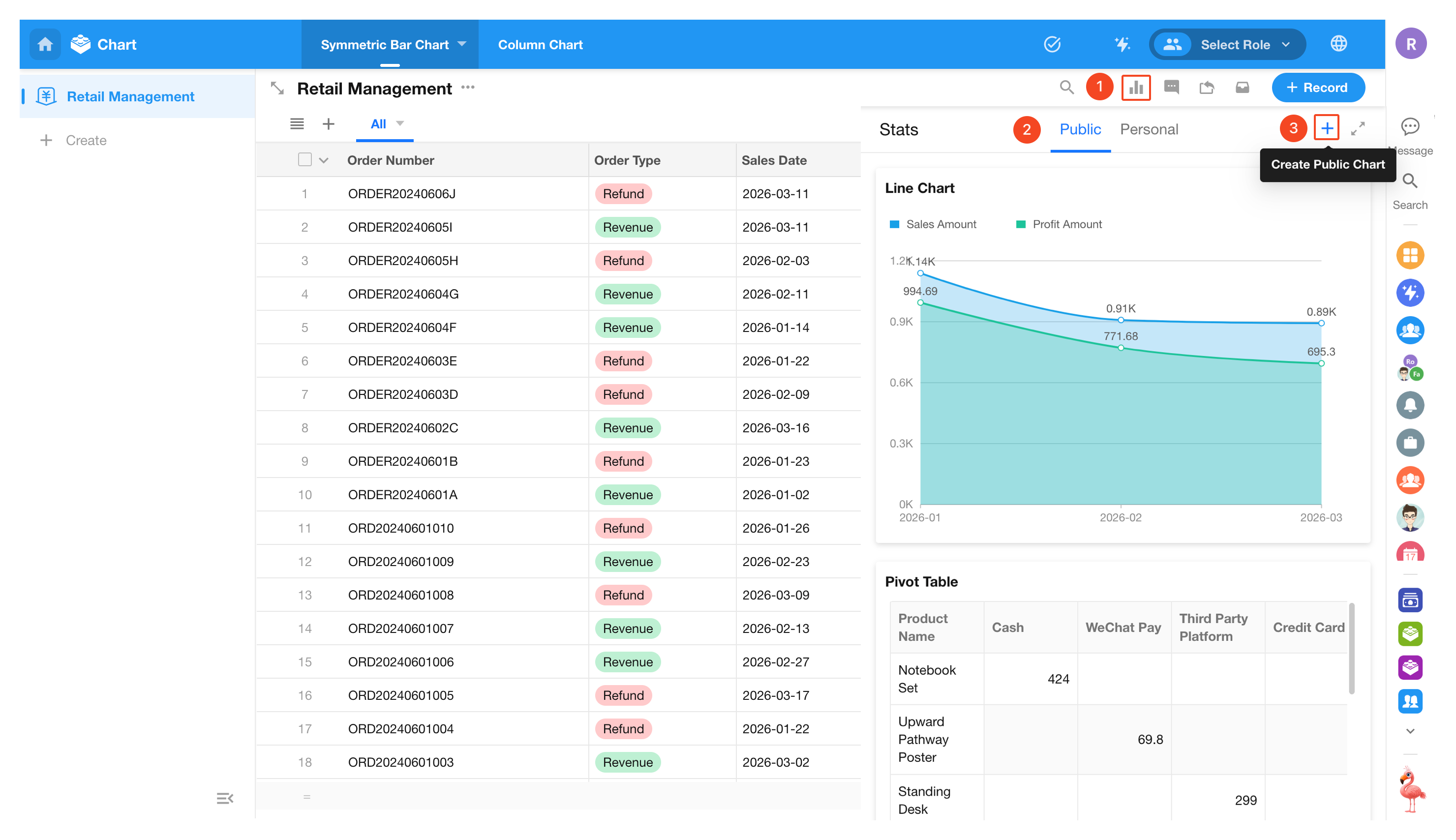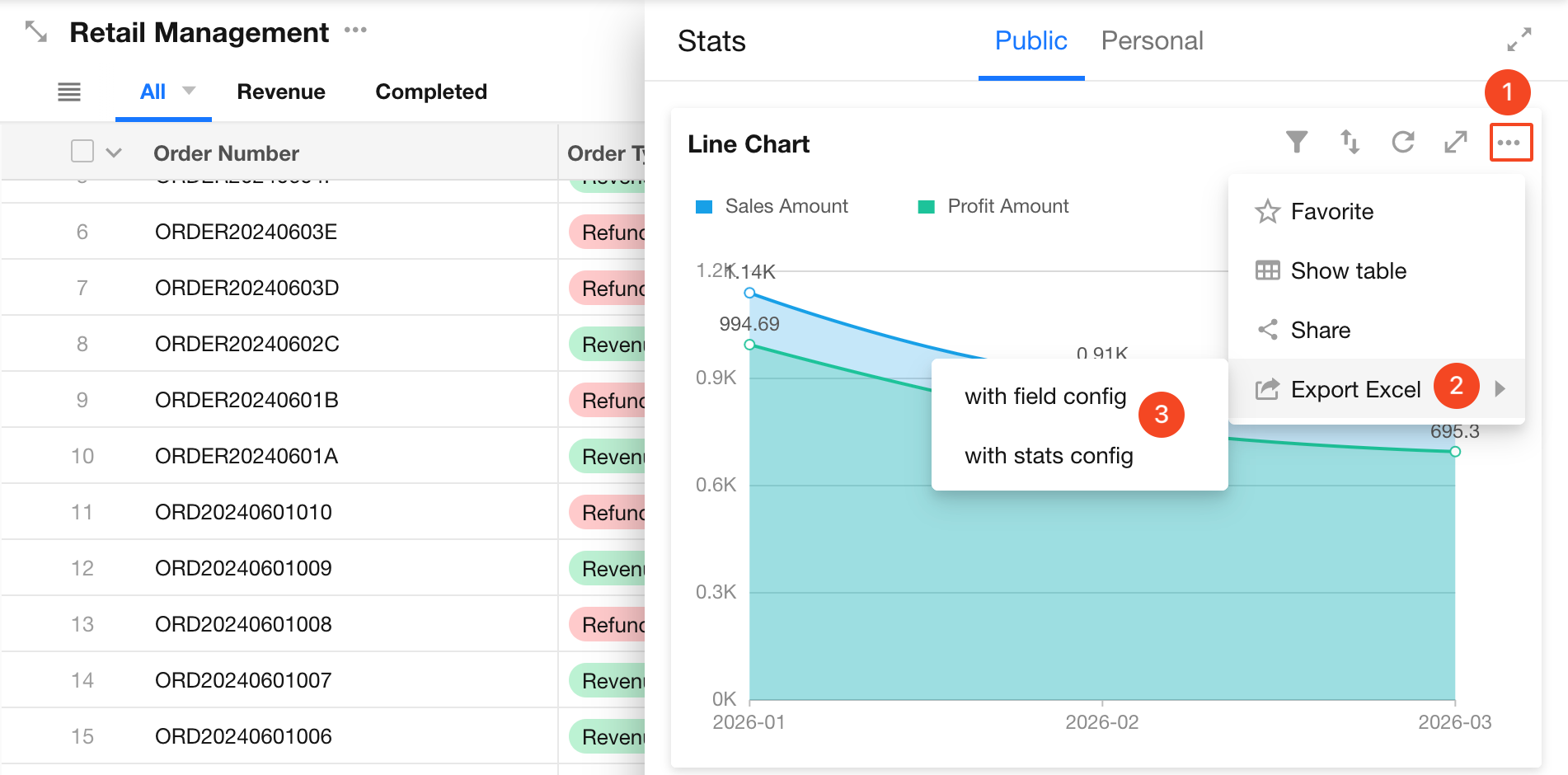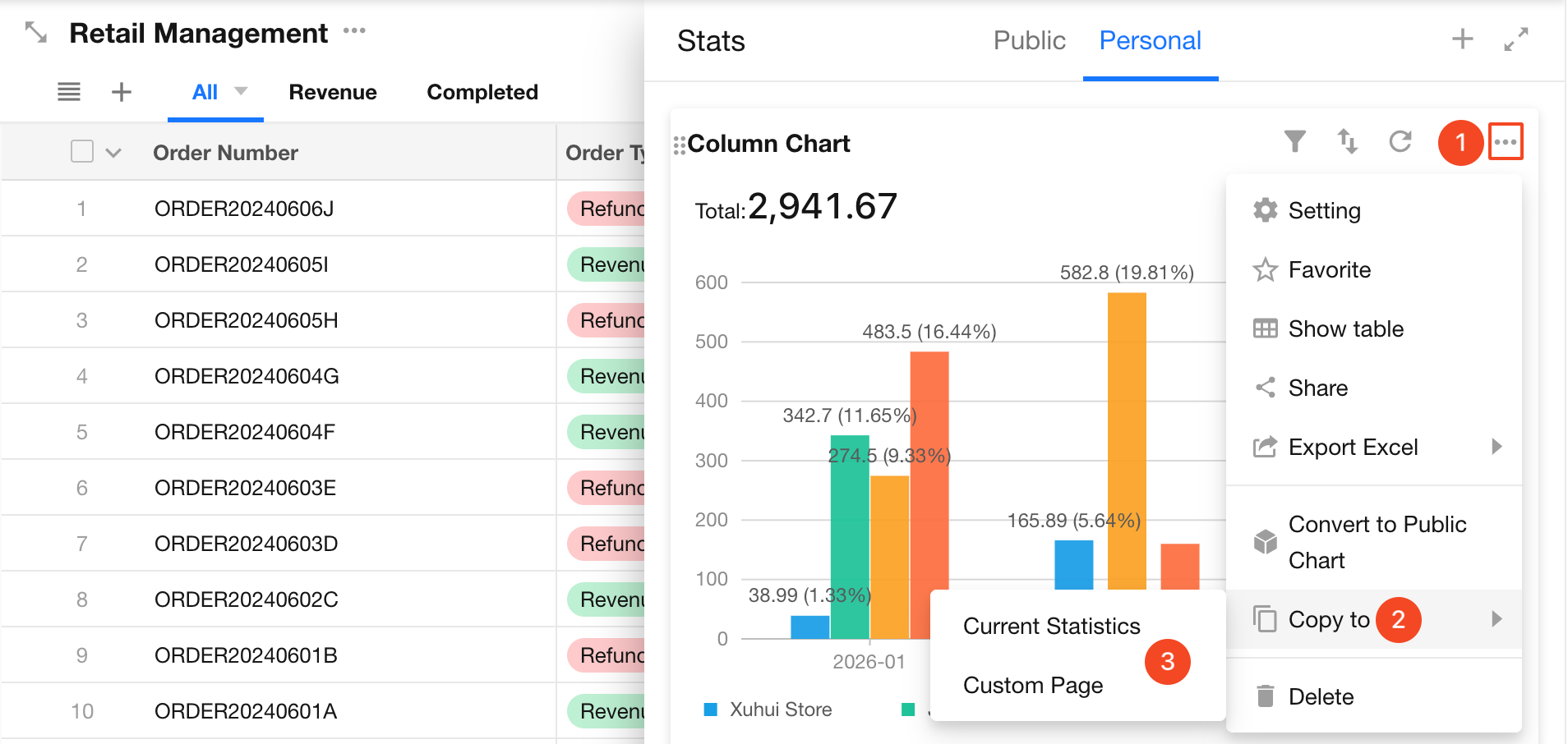 When viewing charts, regular users can perform actions such as filtering, sorting, exporting, saving as images, and sharing.
