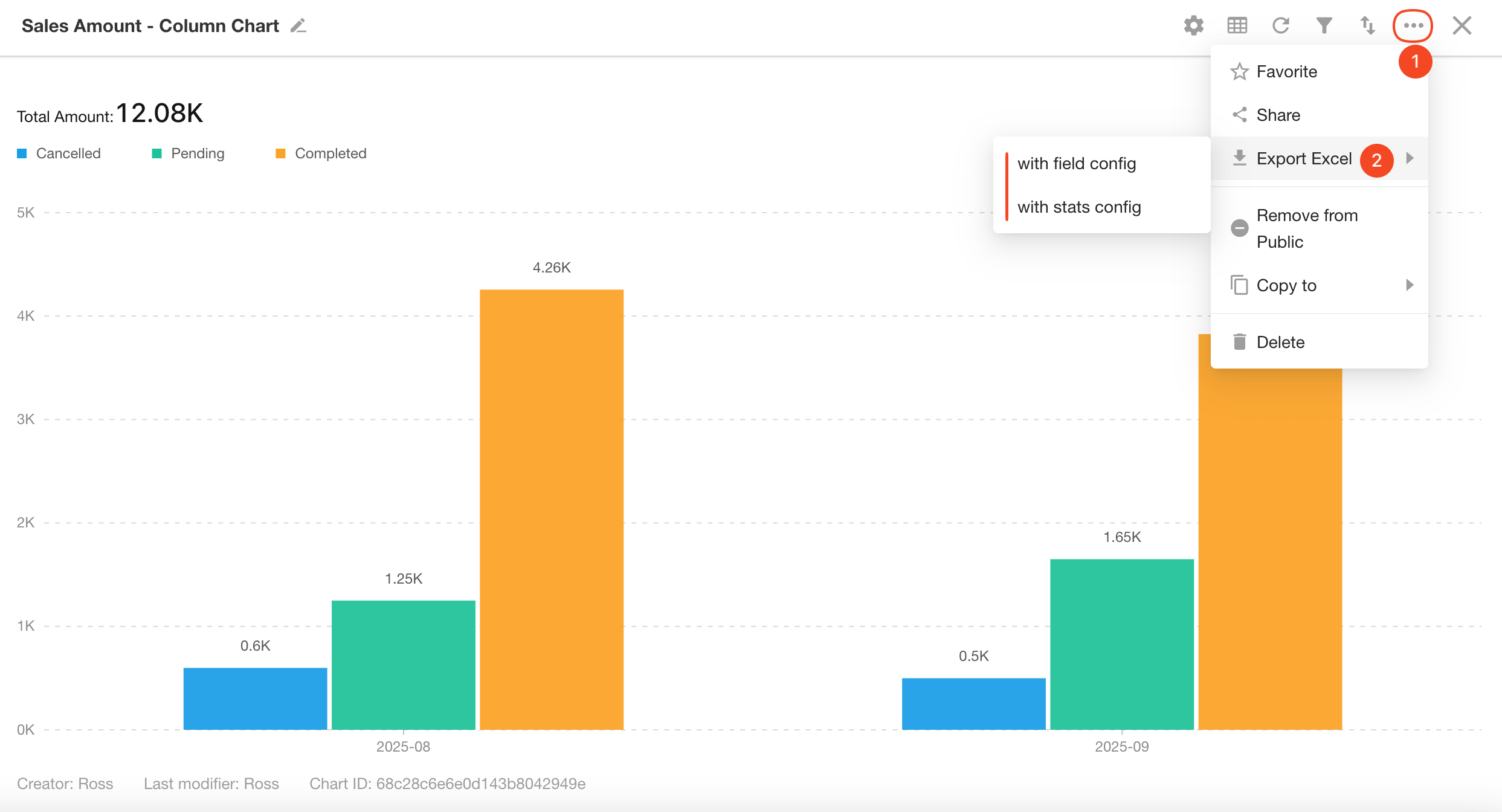 Chart dada can be exported in Excel format. The exported file will use the chart's name as the file name. You can choose to export: