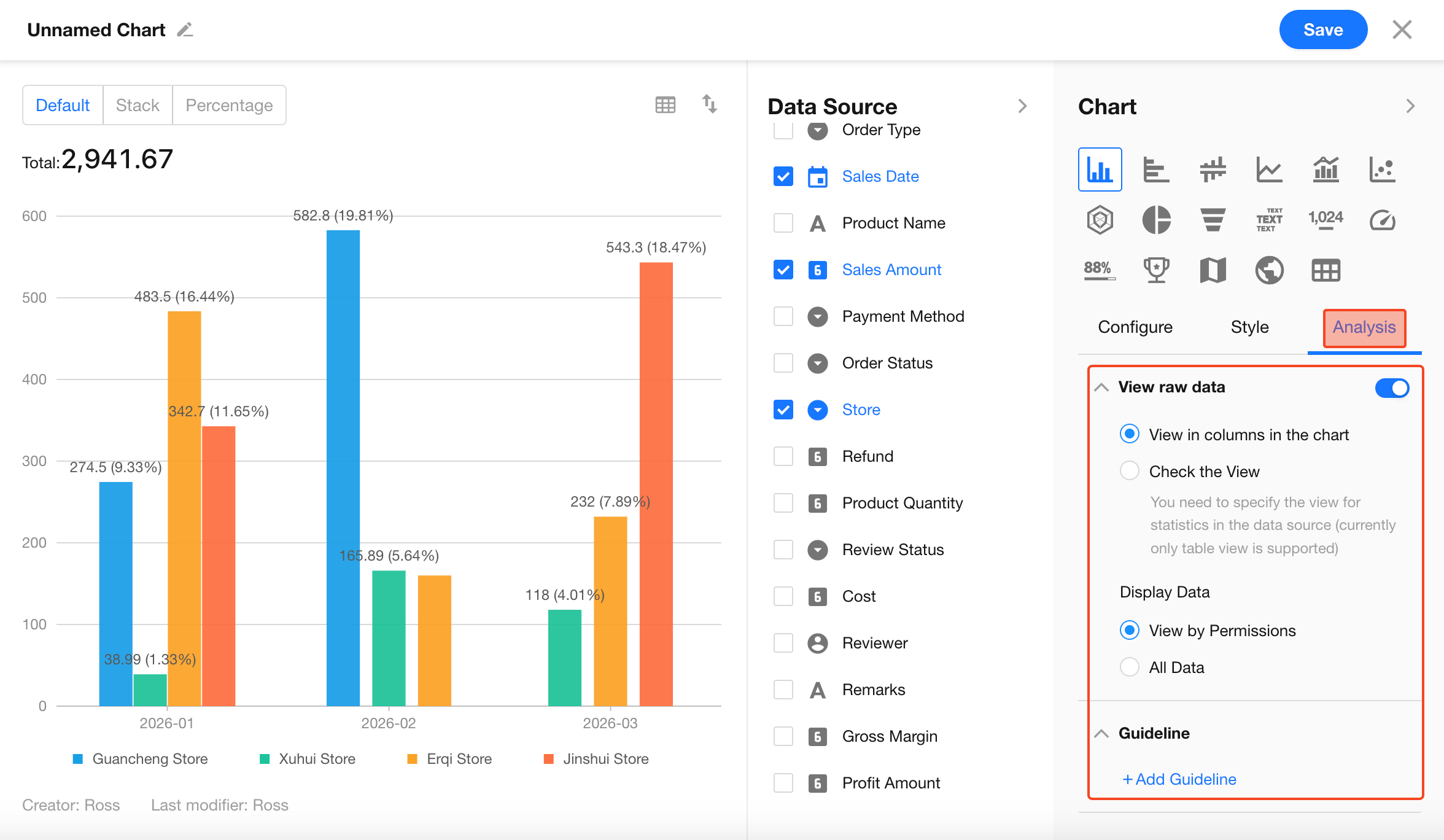 By combining different dimensions and metrics, you can generate various chart types to meet different analysis needs.
