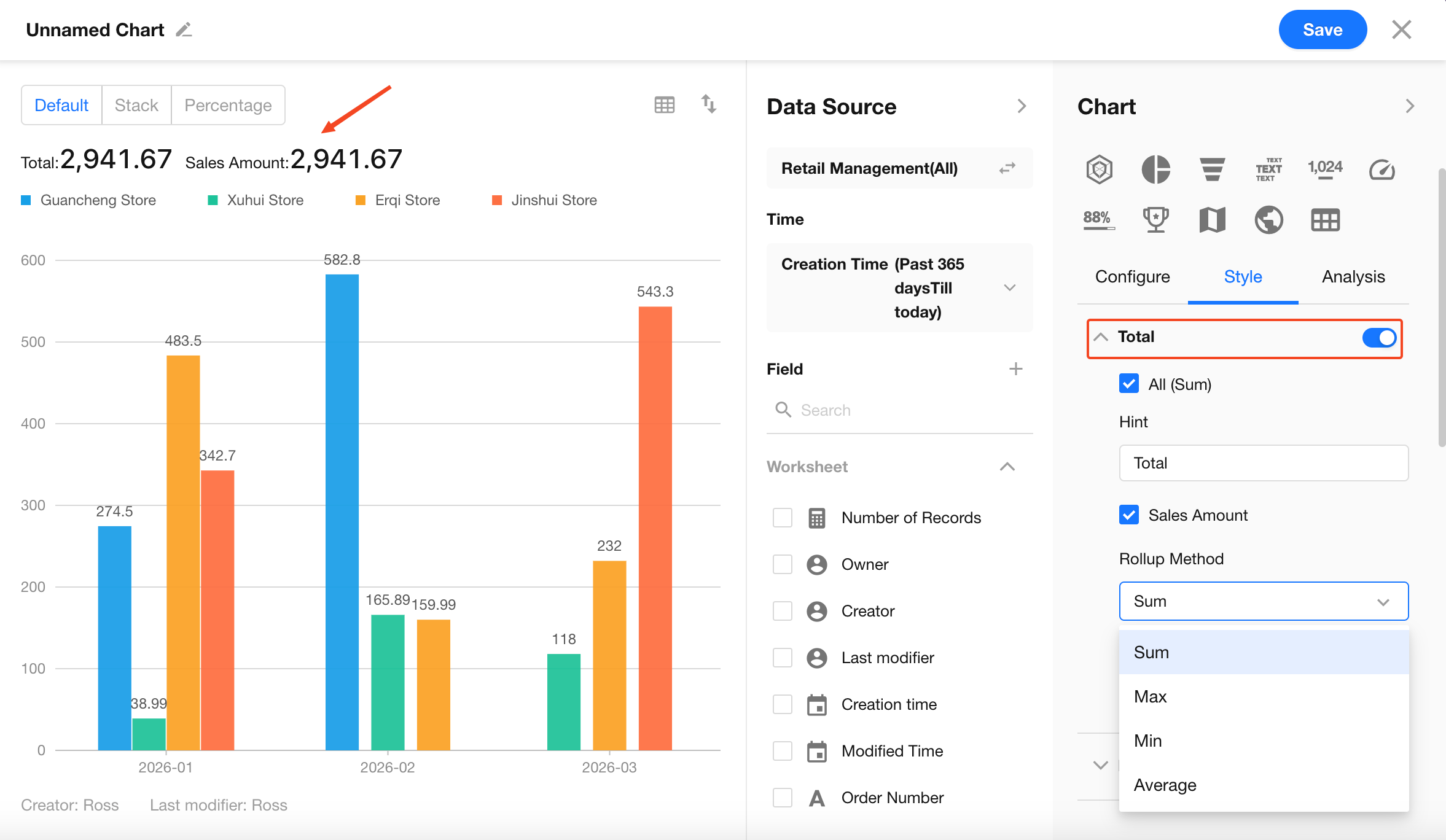 - Total (Sum): Calculates the sum of all Y-axis metrics (optional)