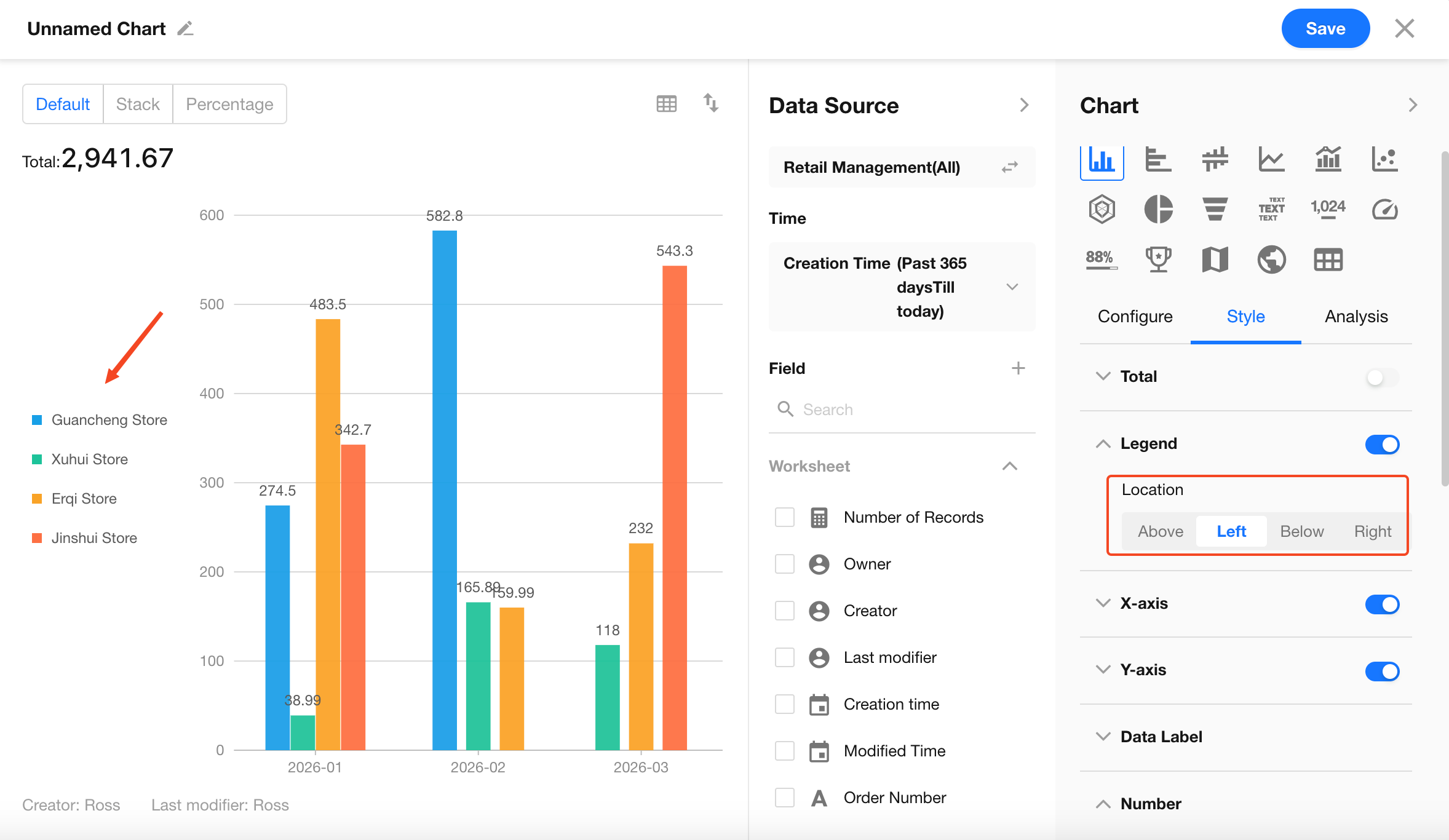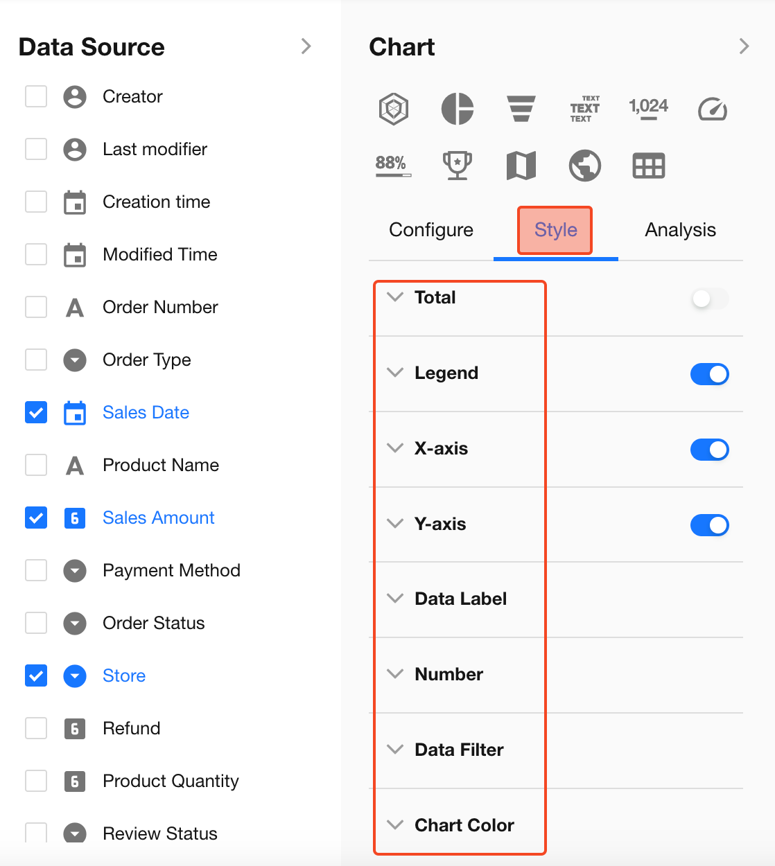 Under the Style settings, you can customize how the chart is displayed to better match your business needs and improve readability.