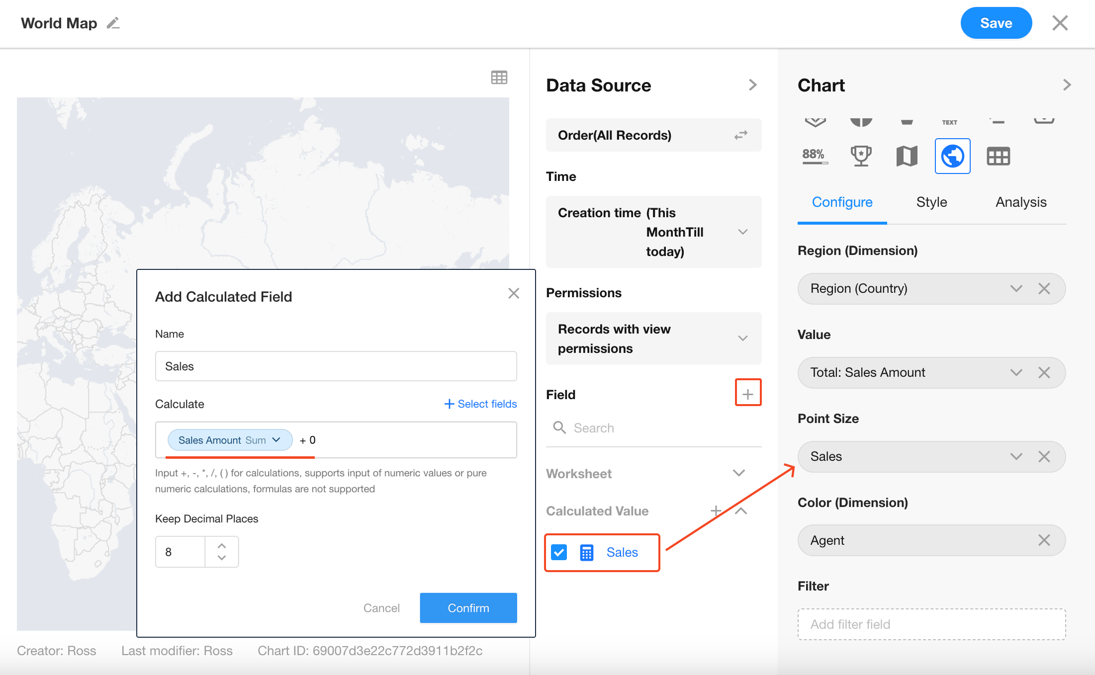 Then, assign this calculated field to Point Size in chart configuration.