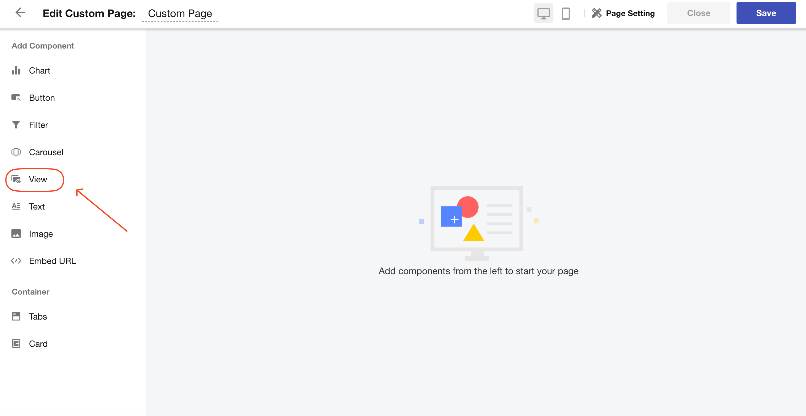 In a custom page, you can embed a worksheet or a specific view from a worksheet. This allows you to display both statistical charts and detailed data views side by side for easy comparison and analysis.