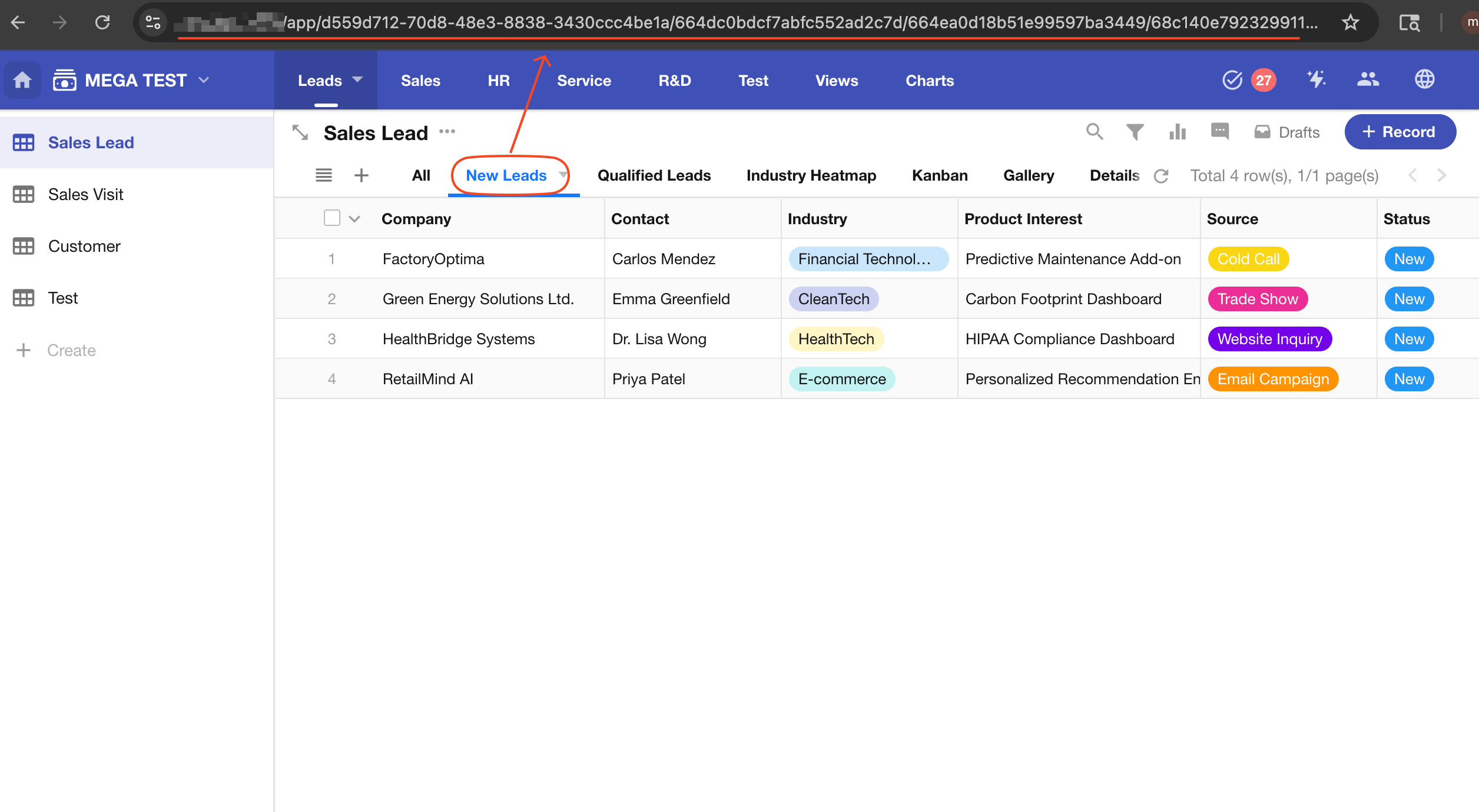 2. Open the target view inside a worksheet and copy the URL from the address bar.