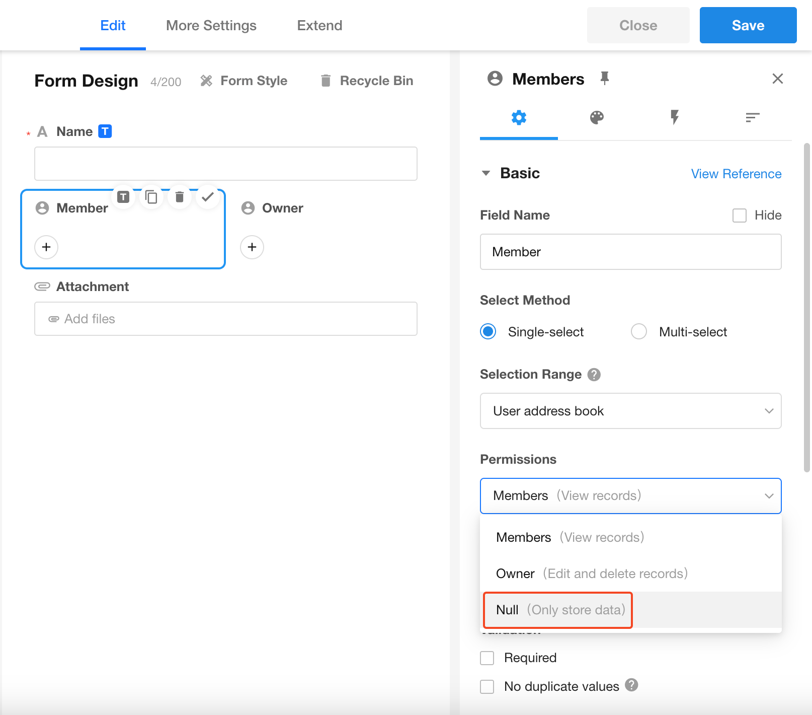 - Members added via members-type fields