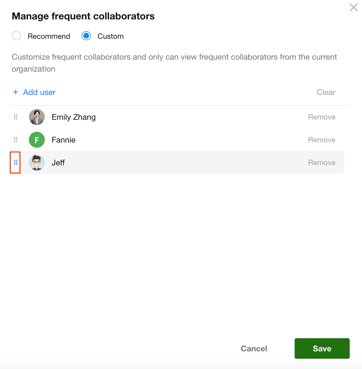 You can also manually add, remove, or reorder frequent collaborators.