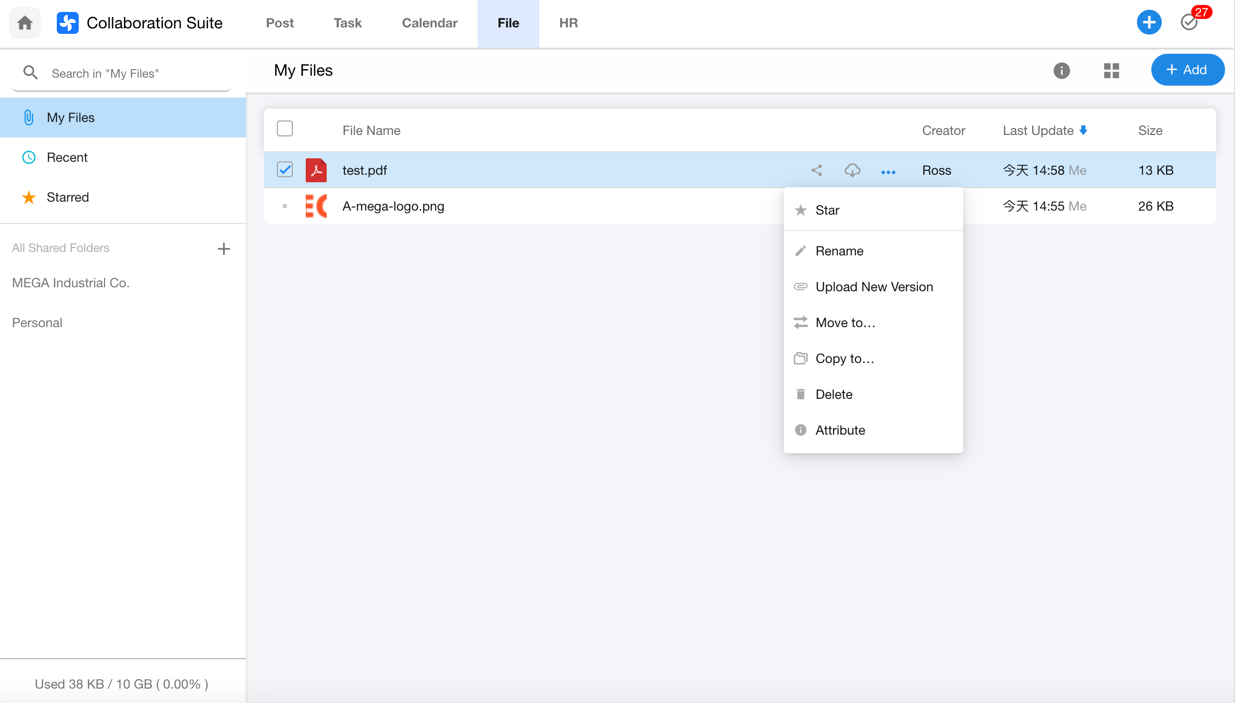 The File module is designed to meet these needs by supporting file storage, sharing, version control, and collaboration.