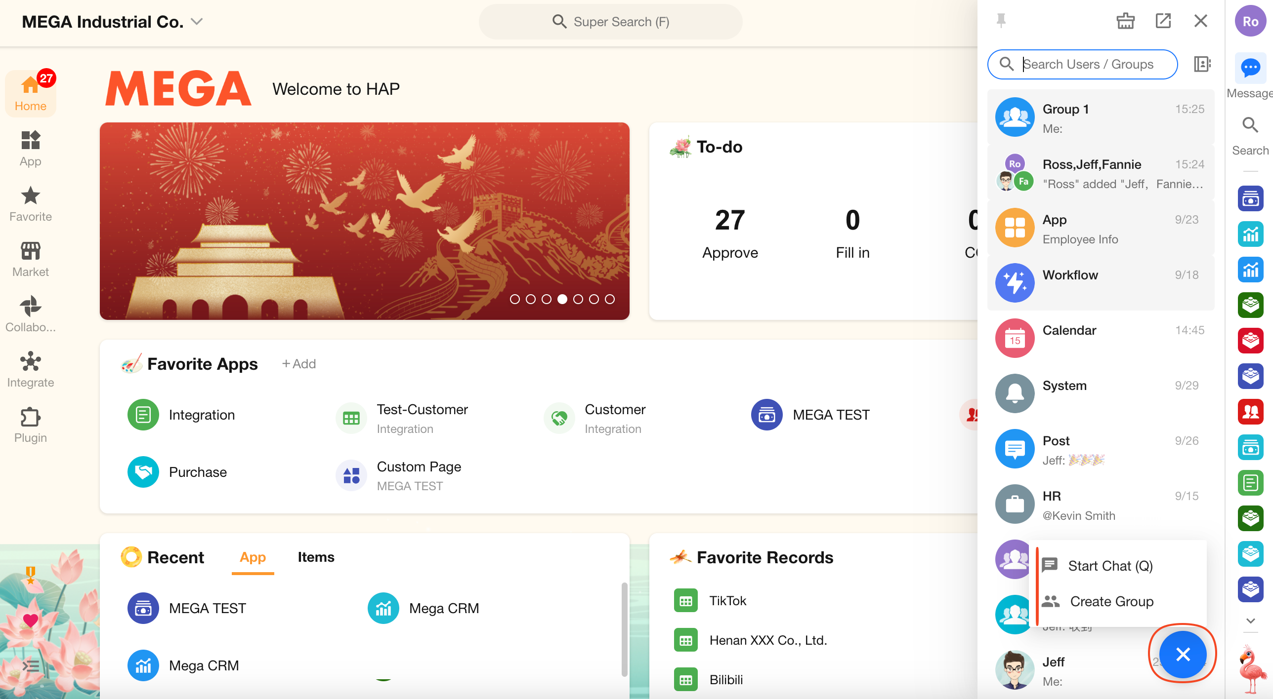 Both groups and chats support multi-person conversations. Click the "+" button in the Messages sidebar to quickly create a group or start a chat.