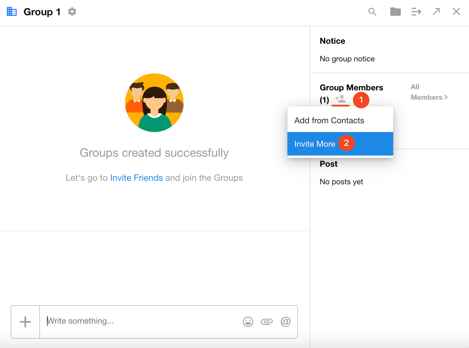 After creating or opening a group chat, you can directly invite an external user by entering their account information.