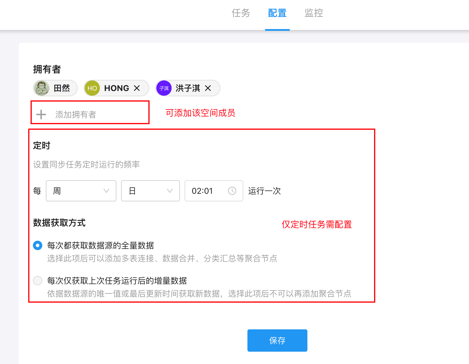 顶部页签(任务 / 配置 / 监控)