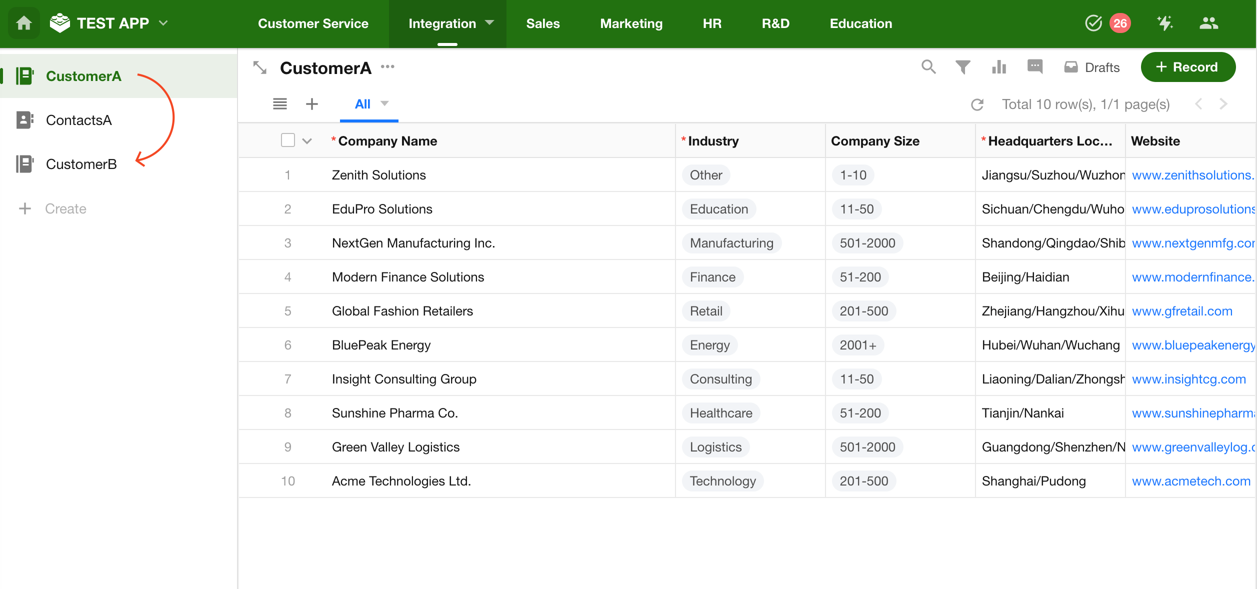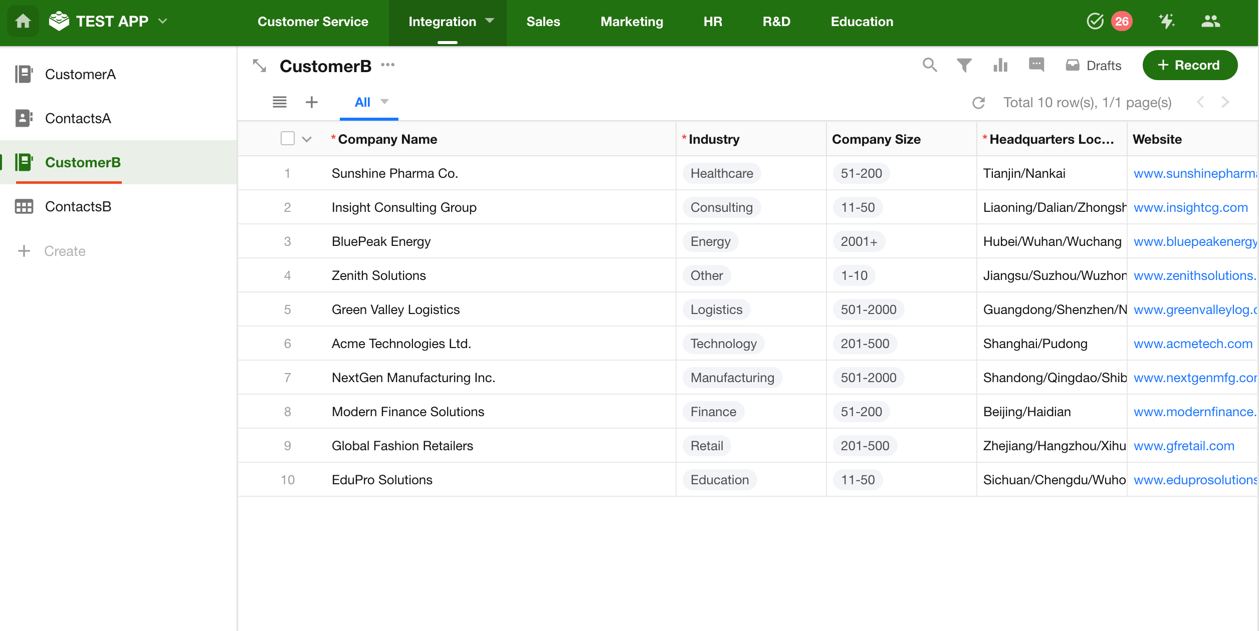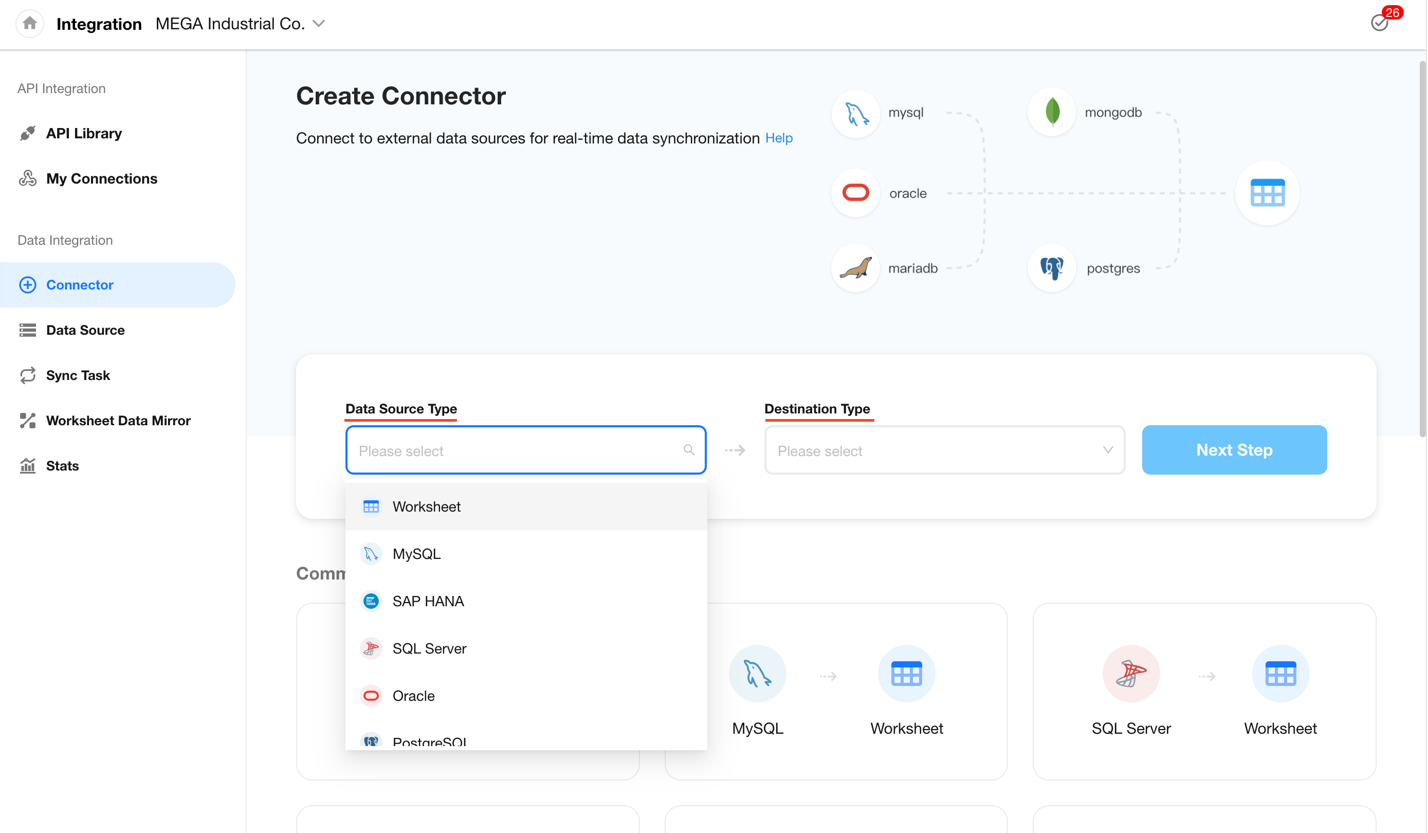 The core capability of Data Integration in HAP’s Integration Center is to solve the issue of fragmented data across different business systems. By connecting directly to databases, it supports both real-time and scheduled synchronization. With simple field mapping, users can sync data between databases and worksheets, or even between different databases.