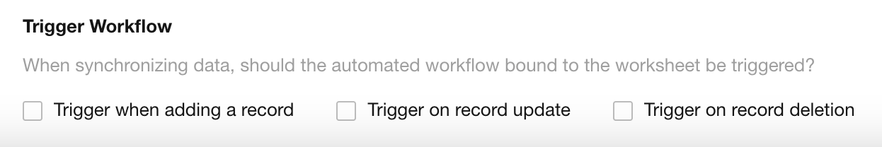 During sync, records may be added, updated, or deleted. You can configure whether such changes should trigger associated workflows.