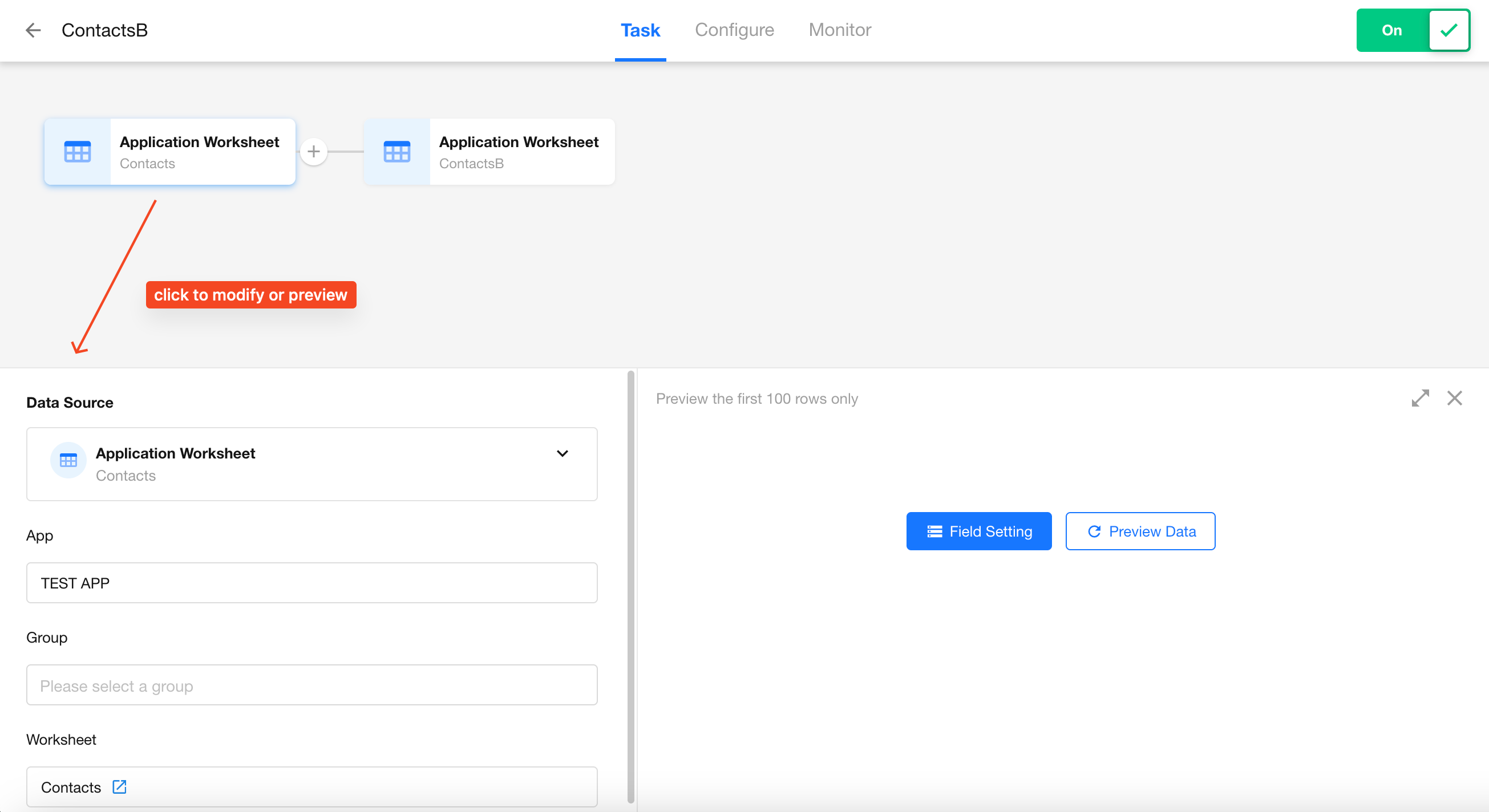 Click the task name to configure whether the synchronized data should trigger associated workflows.