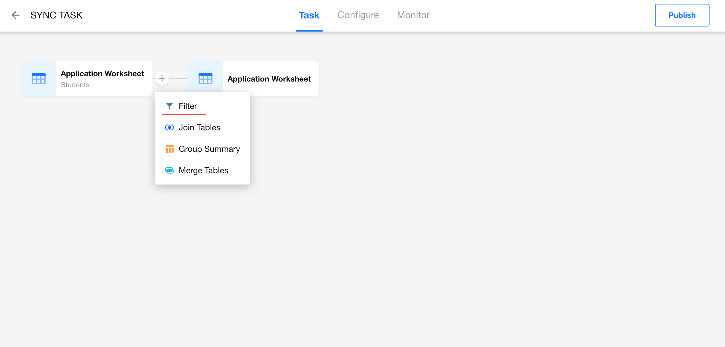 The Filter node allows you to screen data during the sync process. Only the filtered data will be processed and passed to the next node.