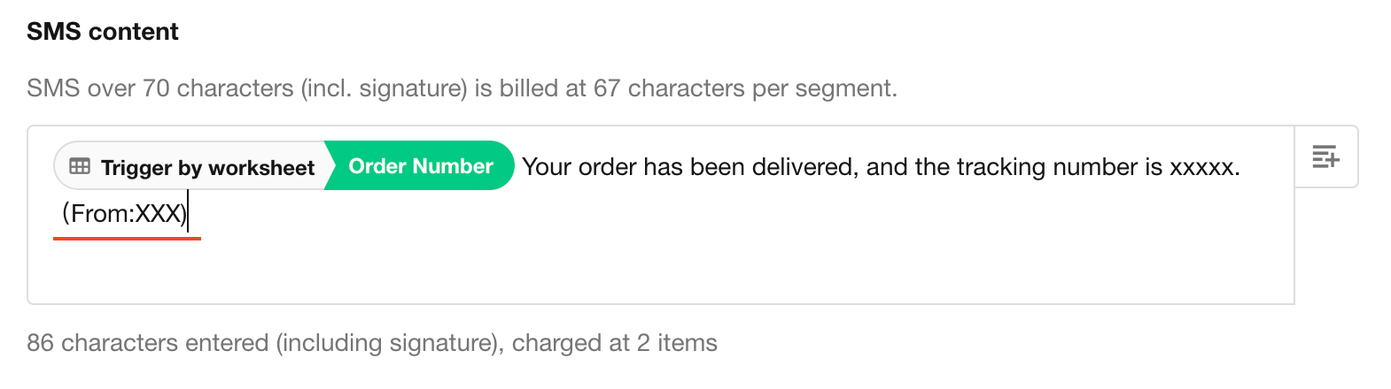 If you use 【Mingdao】 or 【Jixintong】 and want to reflect the business or organization identity, we recommend manually including that information in the SMS body.