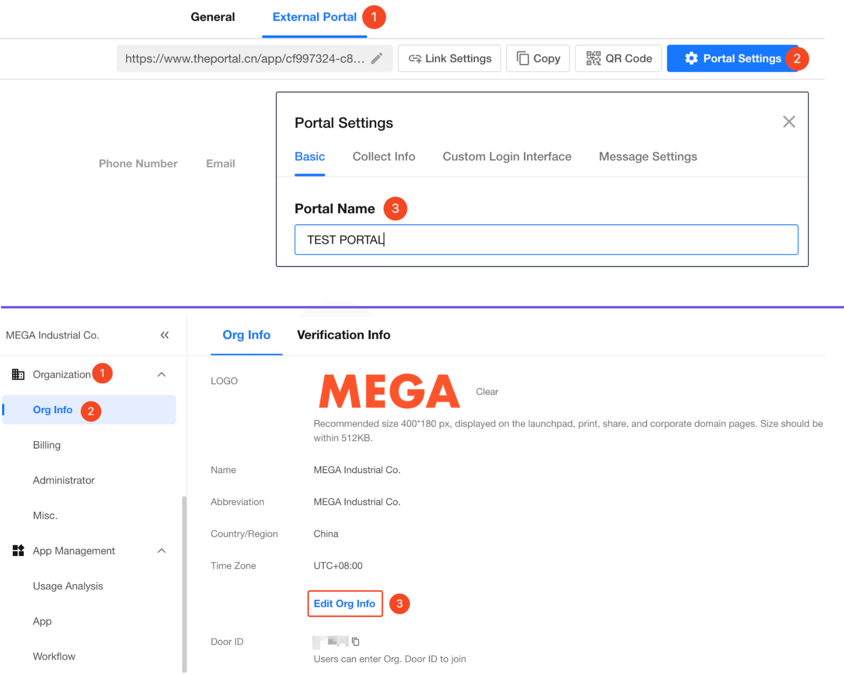 [External Portal] > [Portal Settings] > [Basic Settings] > [Portal Name] -