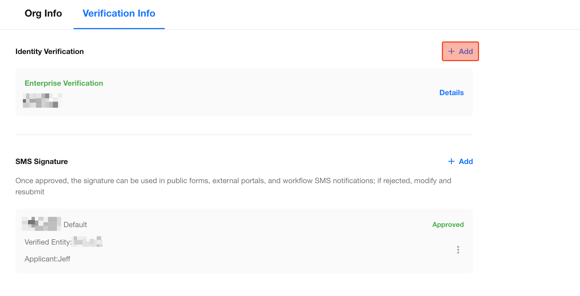 | Jixintong | When no verified custom signature is available and sender identity must be included | External Portal: 【Jixintong】Your verification code is 1234. Thank you for using our service. (Sent from: Portal Name) Public Form: 【Jixintong】Your verification code is 1234. Thank you for using our service. (Sent from: Org Short Name) |