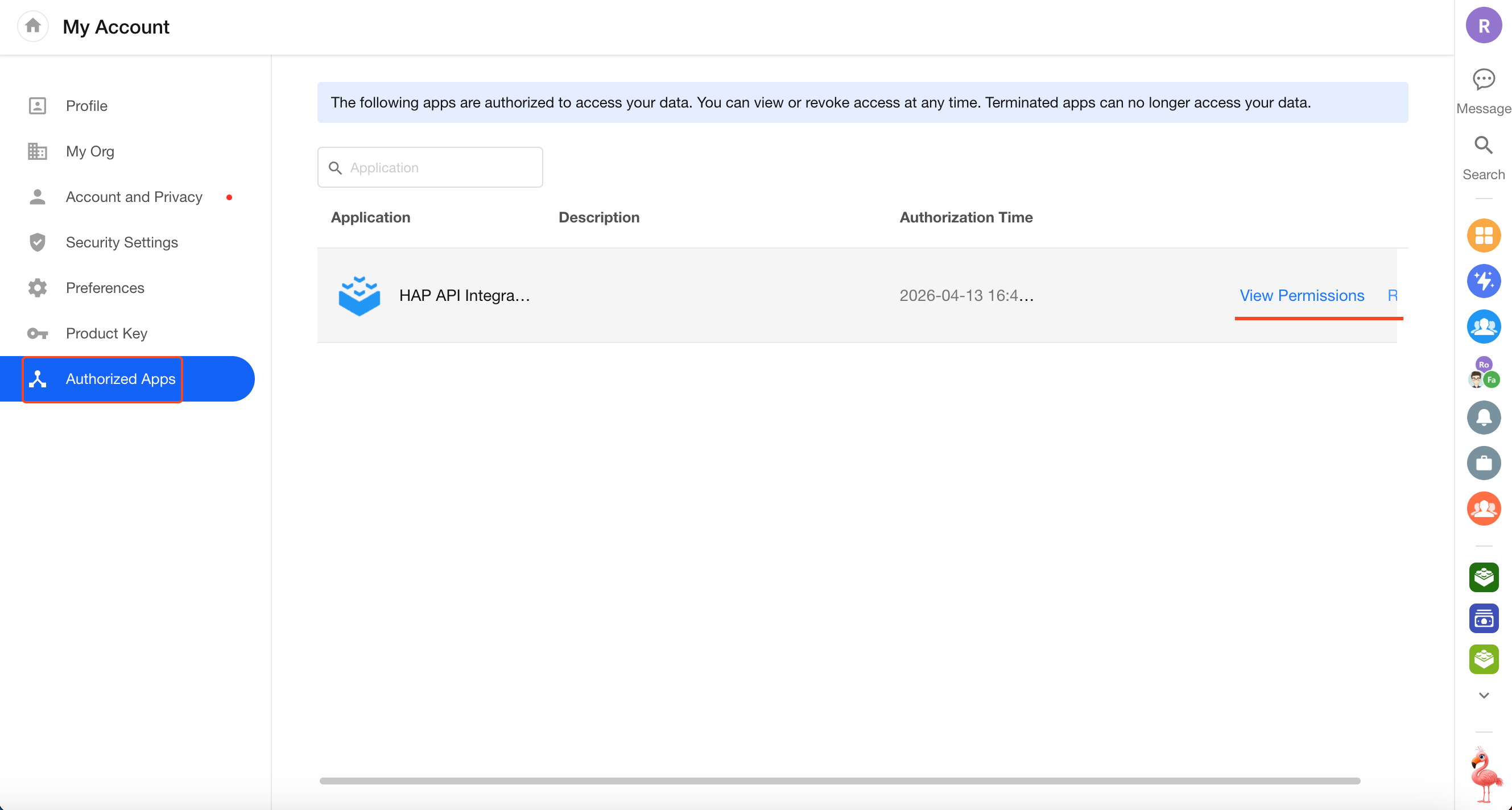 [Profile] > [Account Settings] > [Authorization Management]
