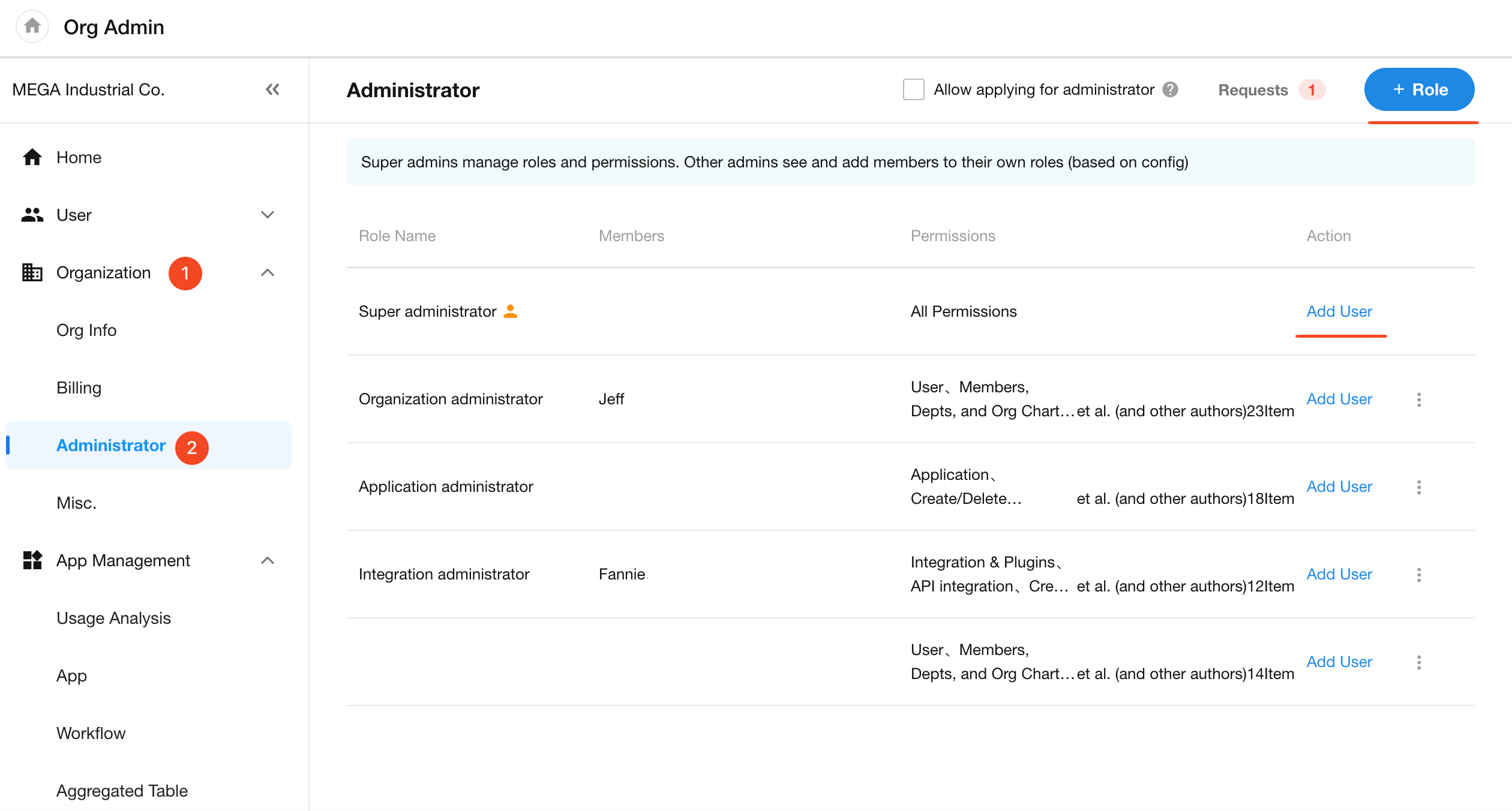 [Organization] > [Administrator]. Add members to the relevant role, and they will be able to pin posts.
