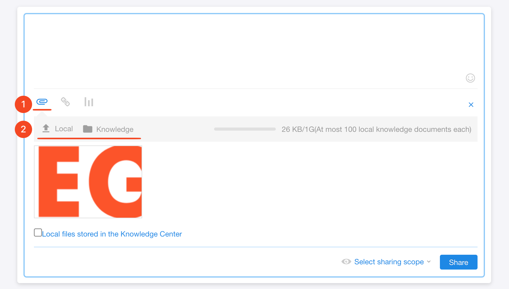 In the post composer, select Upload Document or Upload Image.