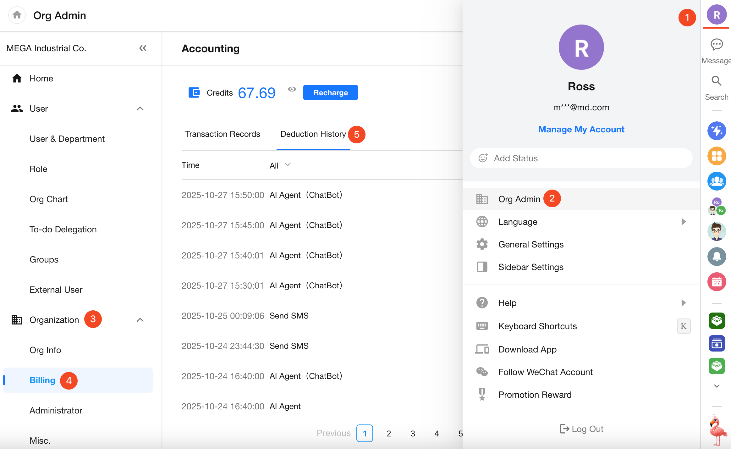 Services such as SMS, email, and API calls are charged in real-time upon usage. Please ensure your organization has sufficient credits available.