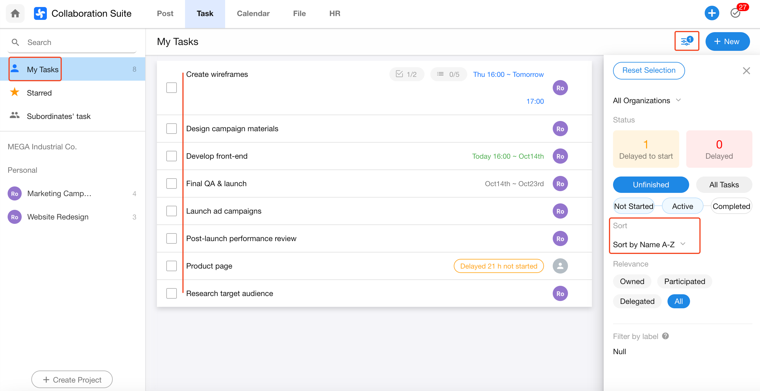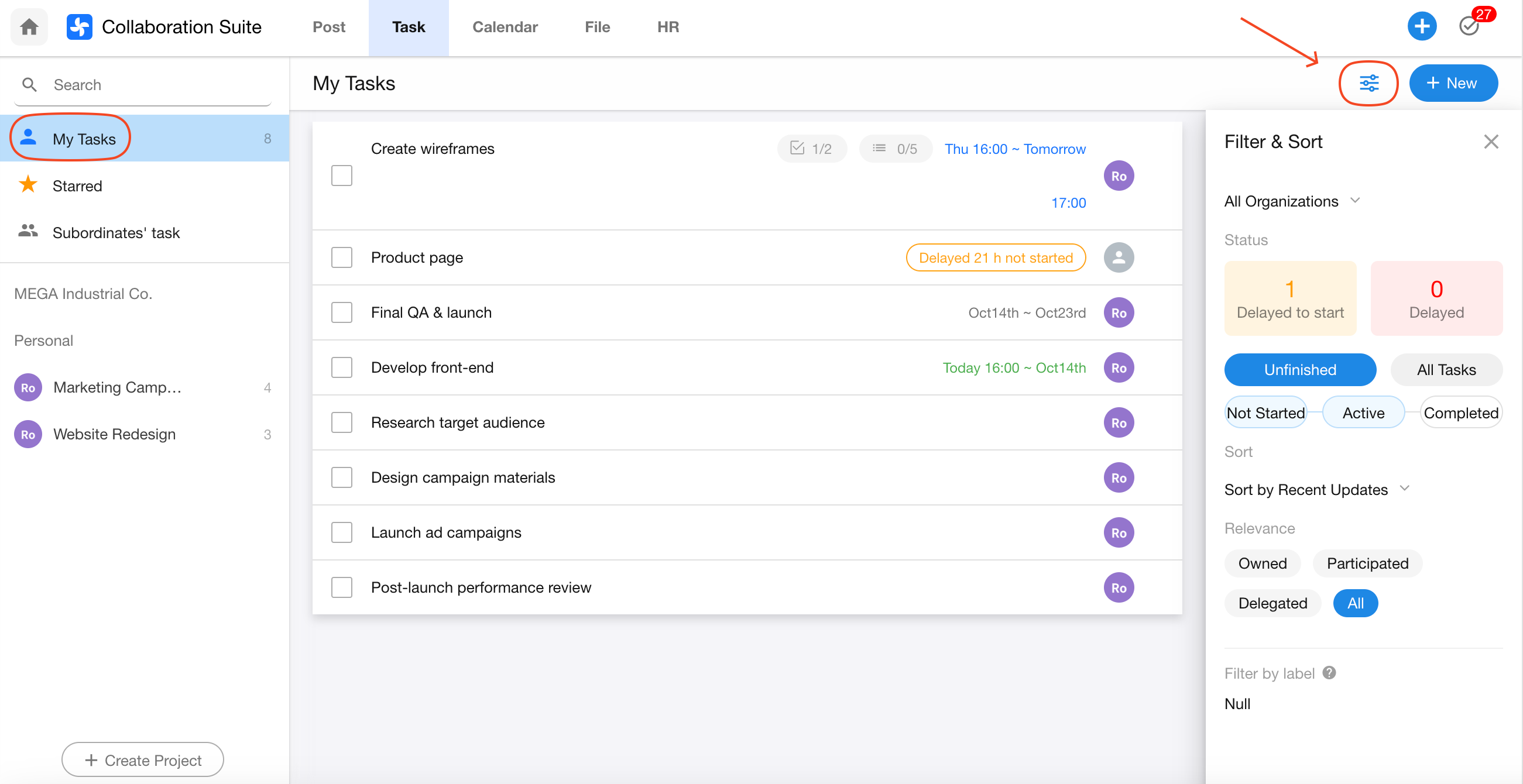 - Show only tasks related to me: View tasks that you own or are participating in within the project.