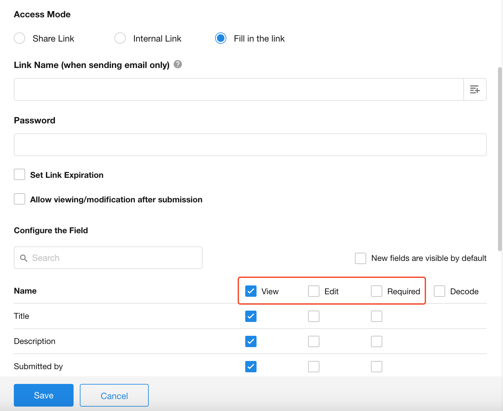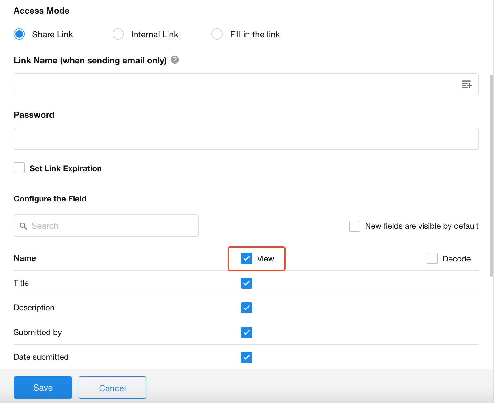 Allows read-only access without login. The link does not expire unless the record is deleted. -