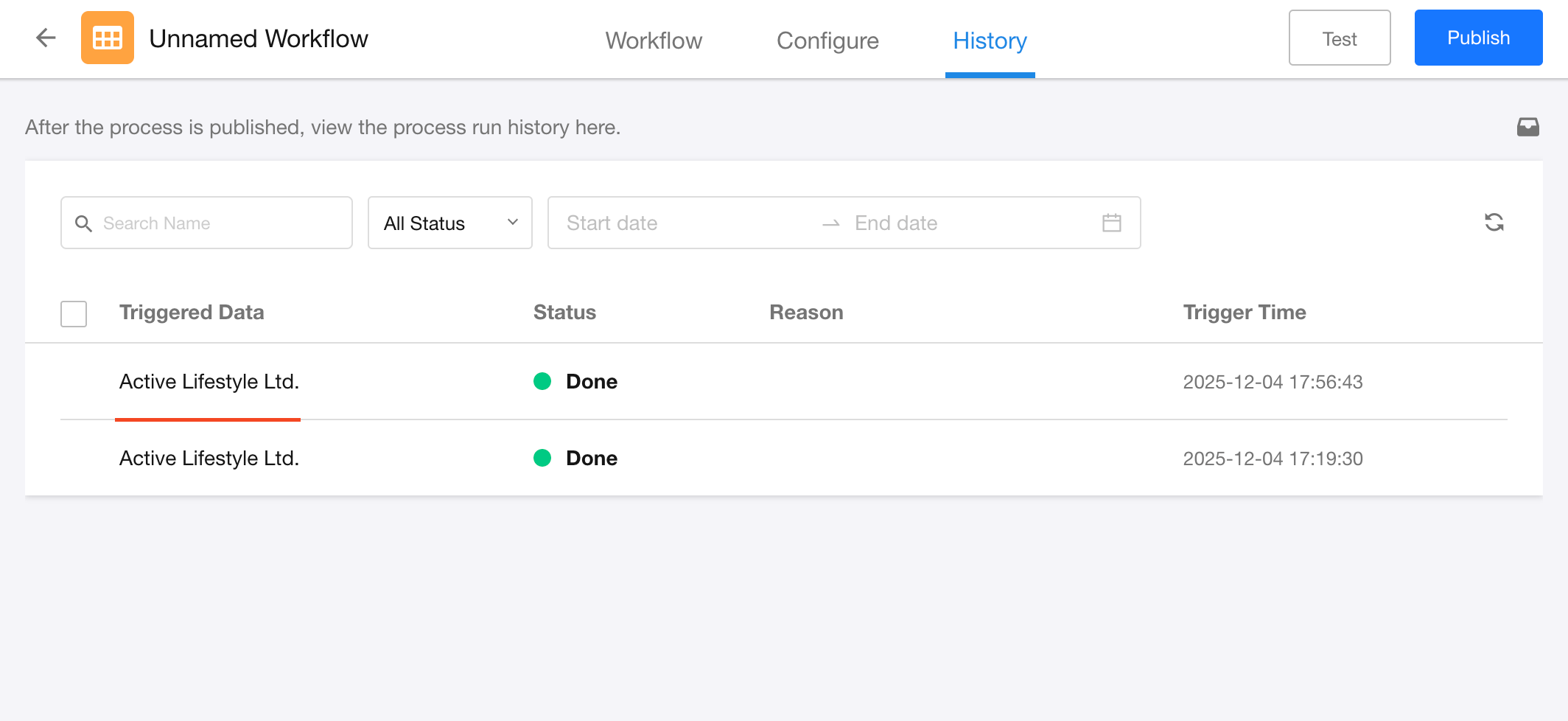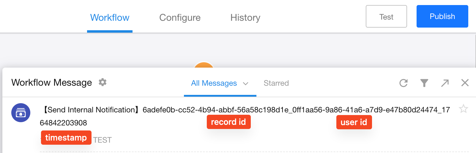 In some cases, it's necessary to know which record triggered the current workflow instance, when it was triggered, and who the trigger user was. This information can be retrieved from the Data Source ID and Execution Instance ID in the workflow node.