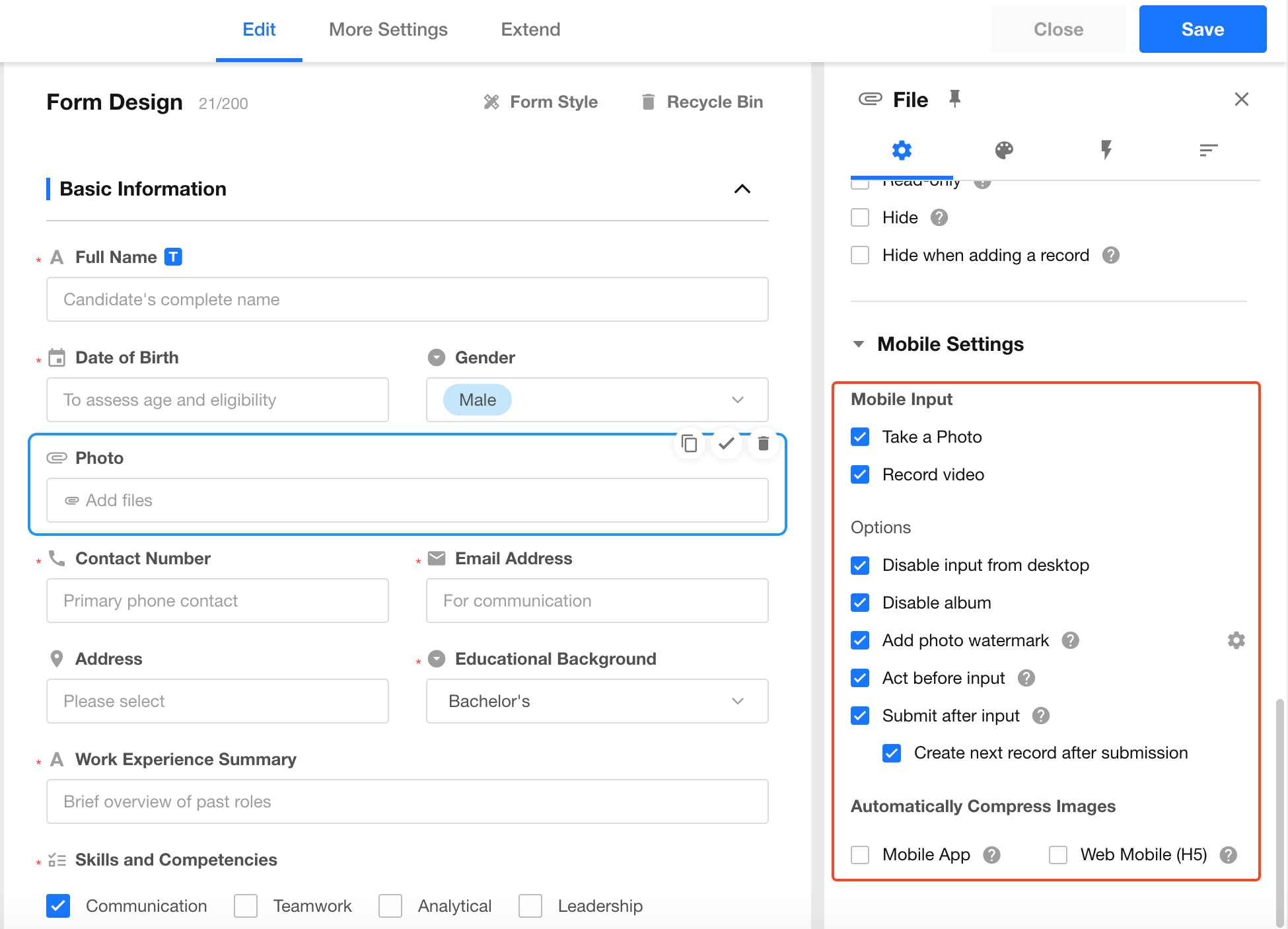 When enabled, the record is automatically submitted after capturing and uploading a photo