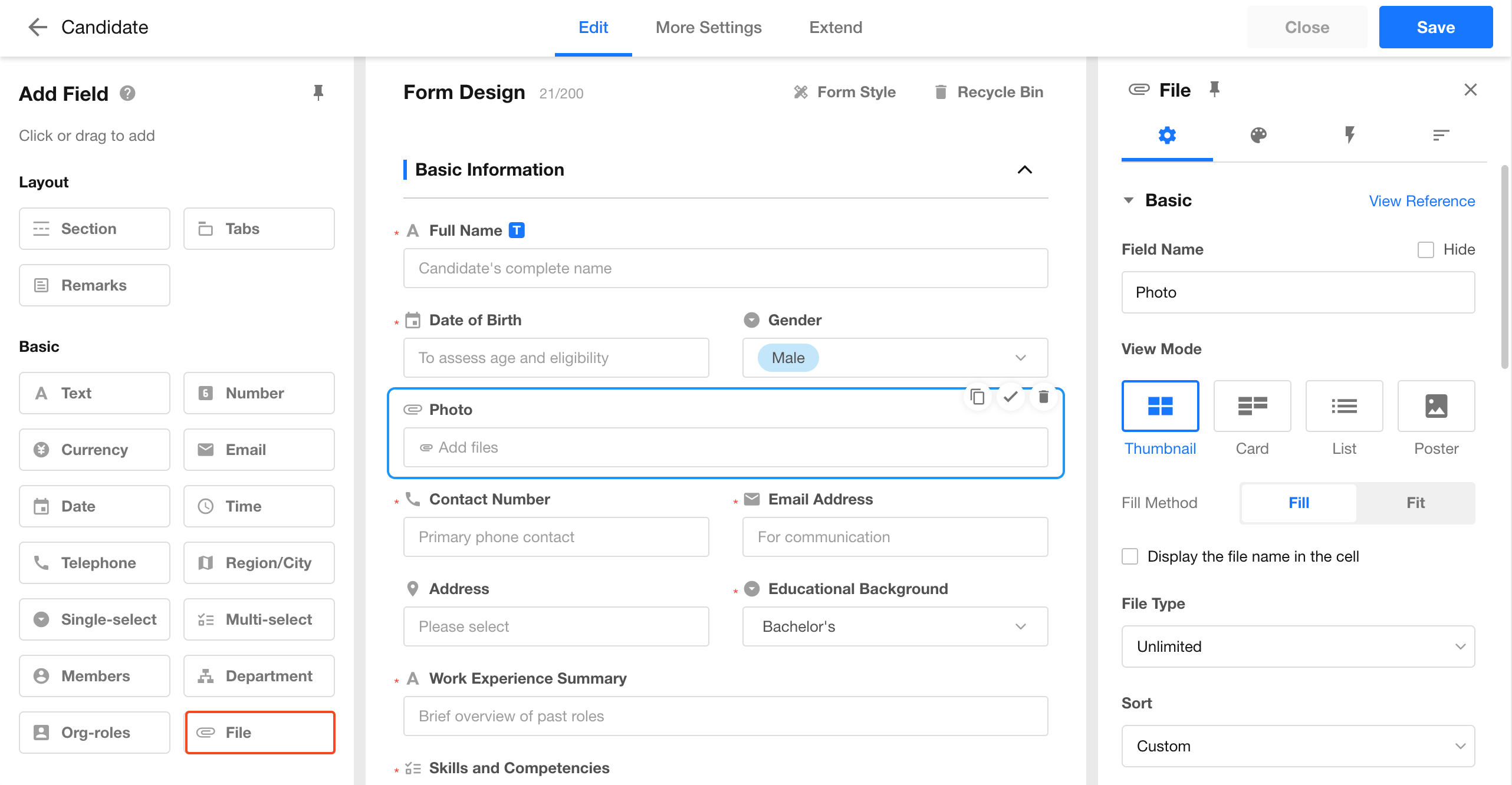 File field, signature field, and attachments in record discussions all support this feature.