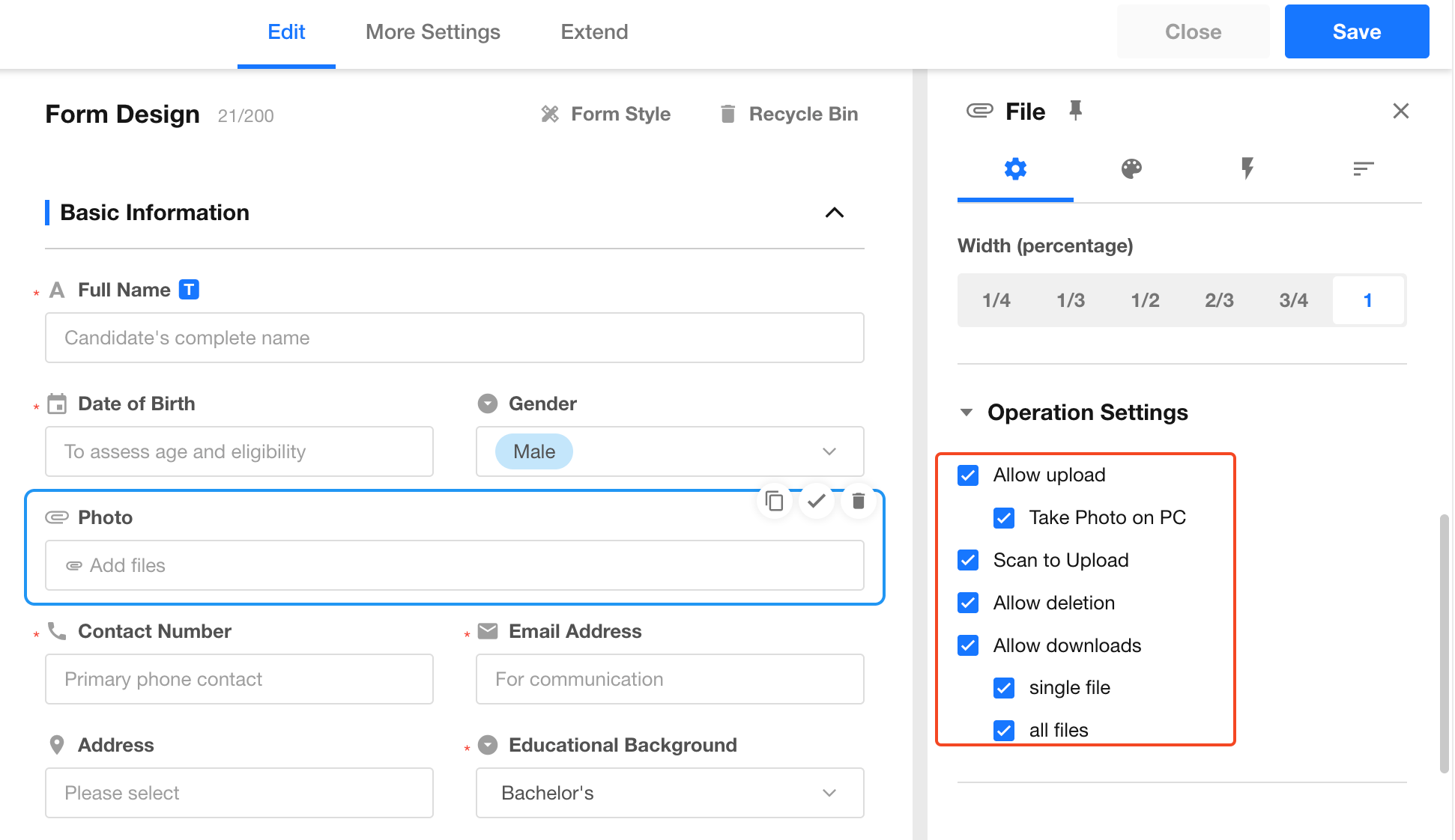 You can configure granular permissions for file control operations in edit mode based on business requirements:
