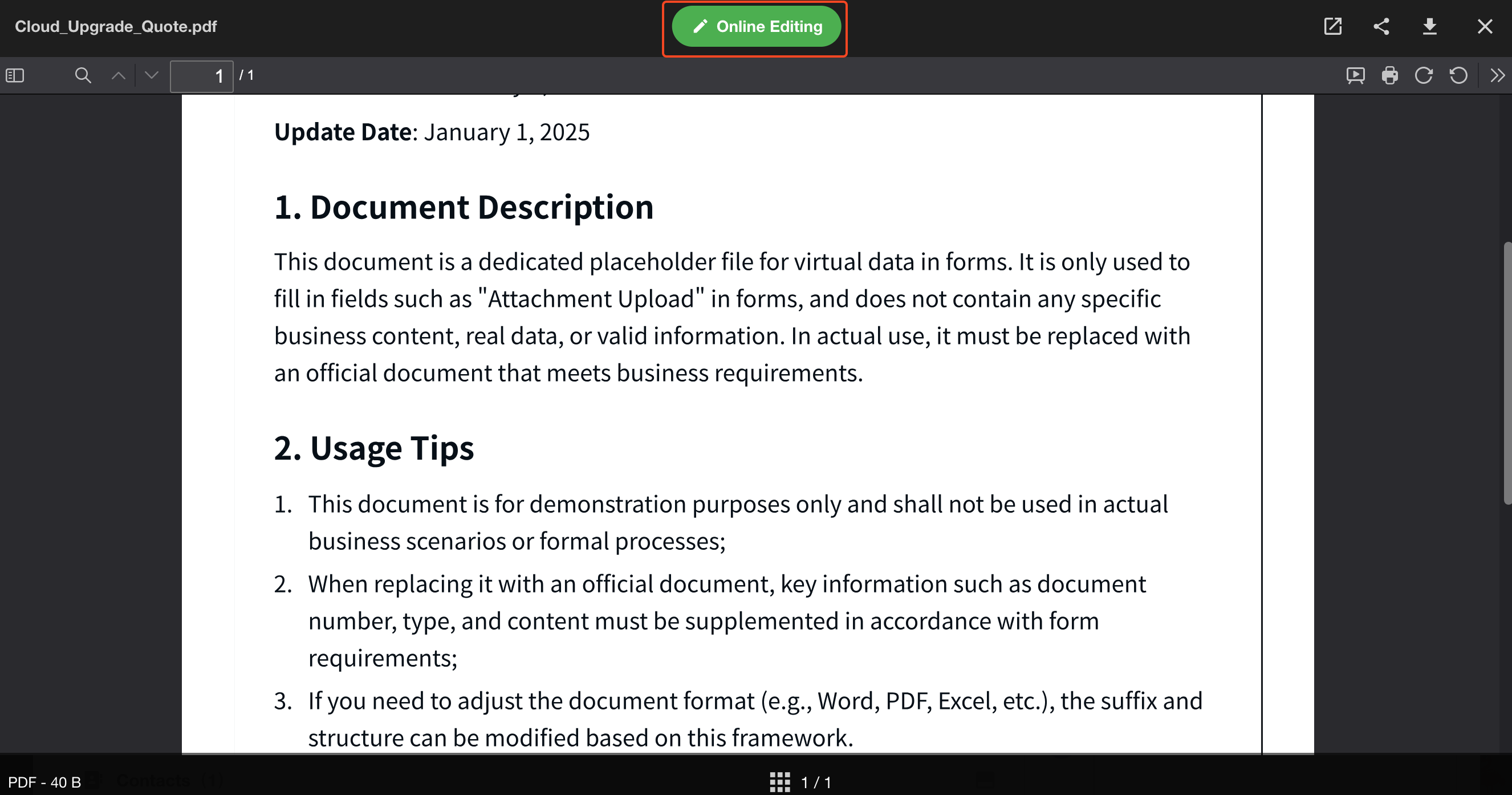 The online preview and editing service supports major document types, covering approximately 95% of common formats.