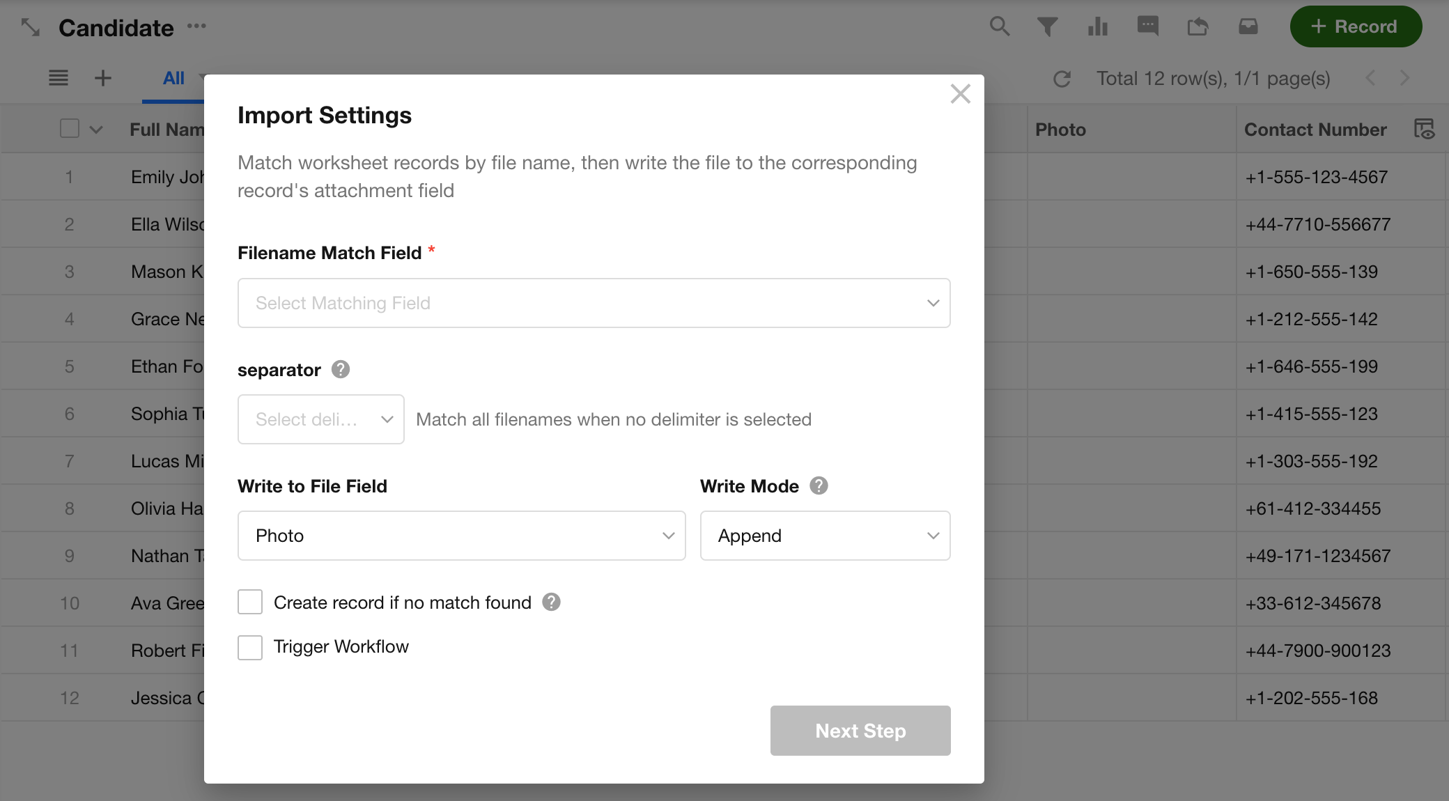 If you already have publicly accessible file links, you can import them into record fields in bulk via Excel. The system will automatically download the files from the links and save them as attachments.