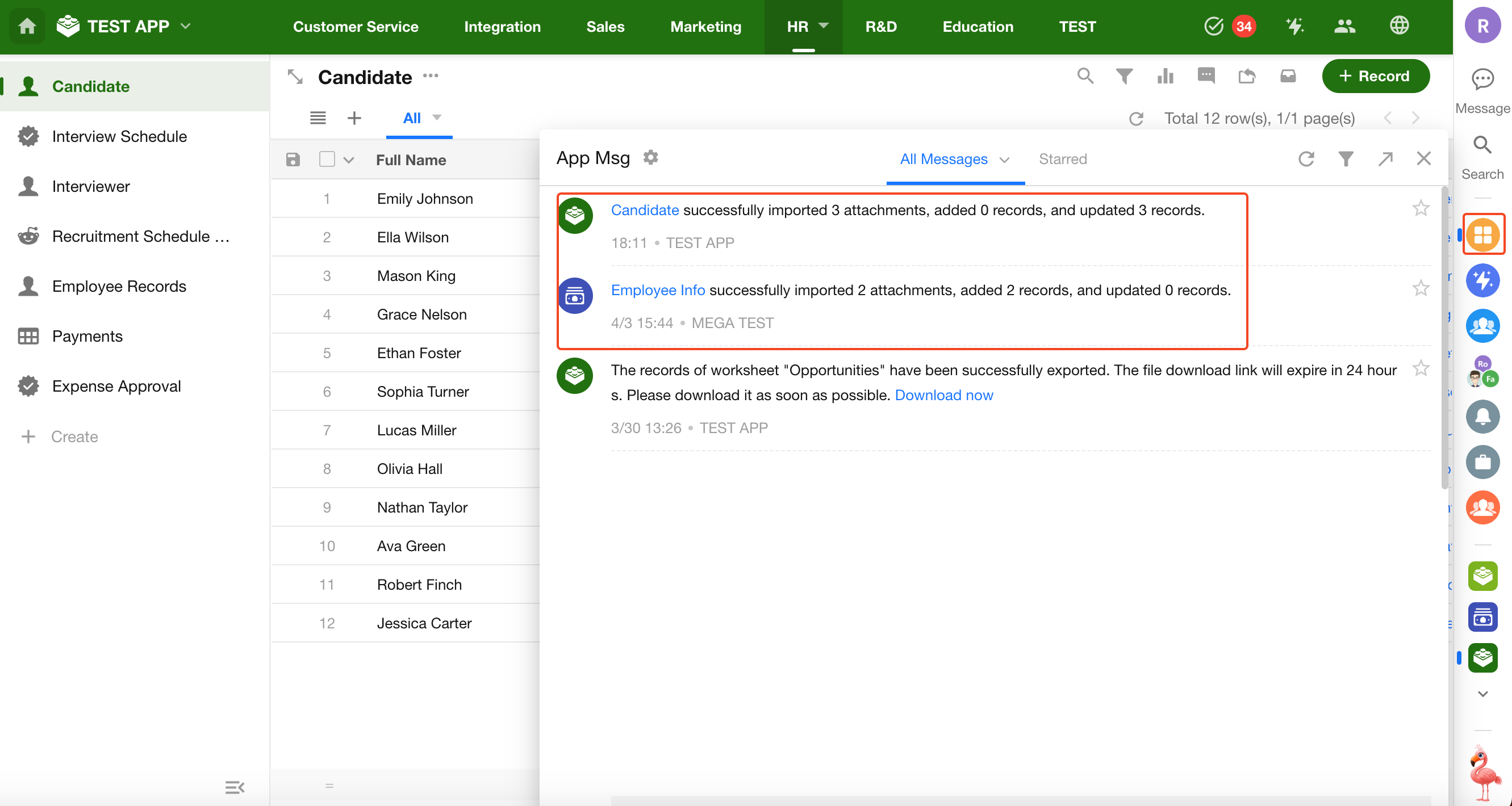 After the import is complete, the system will send notifications via pop-ups and application messages. If some or all files fail to import, you can download an error report to review the reasons.
