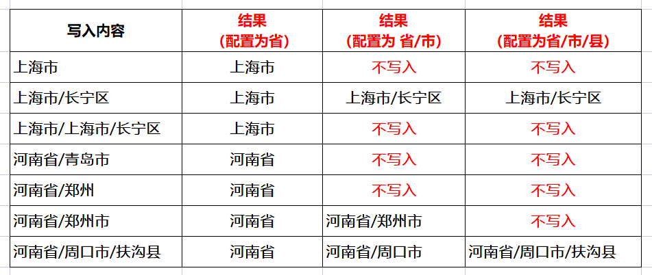 3、省市县格式必须完整,例如XXX省/XX市/XX县。