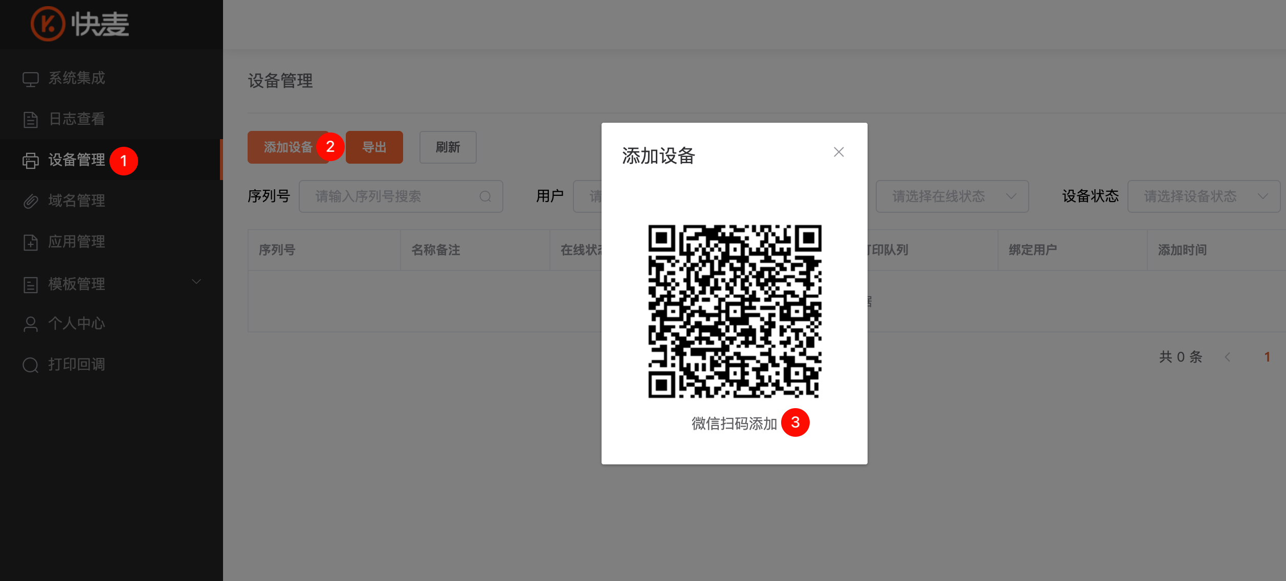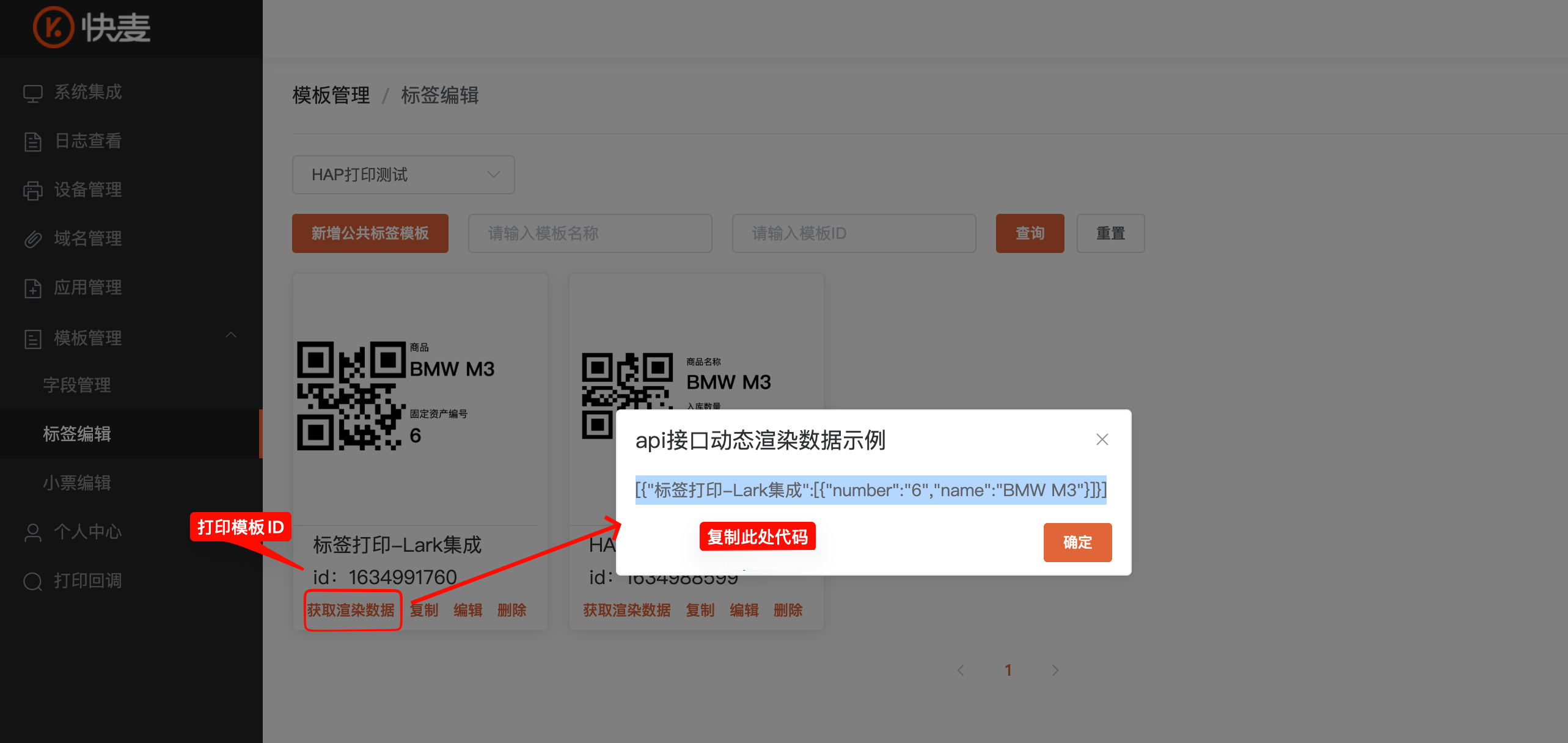 当前支持平台: 快麦云打印。