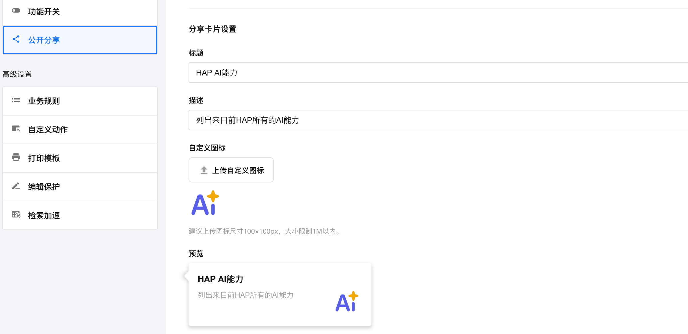 • 自定义图标:默认取视图的icon;可以上传自定义